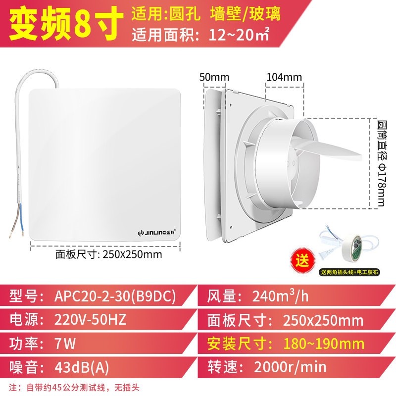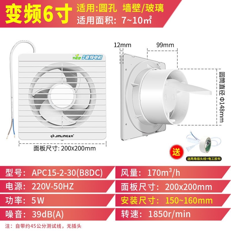 金羚排气扇卫生间静音窗户换气扇排风扇玻璃窗式超薄家用6寸厕所