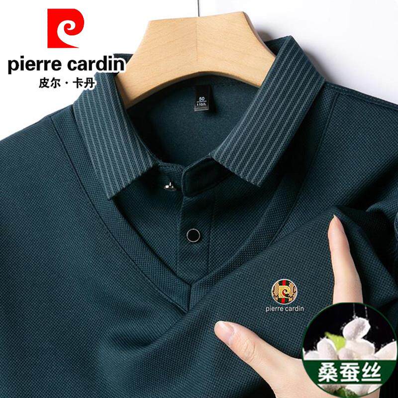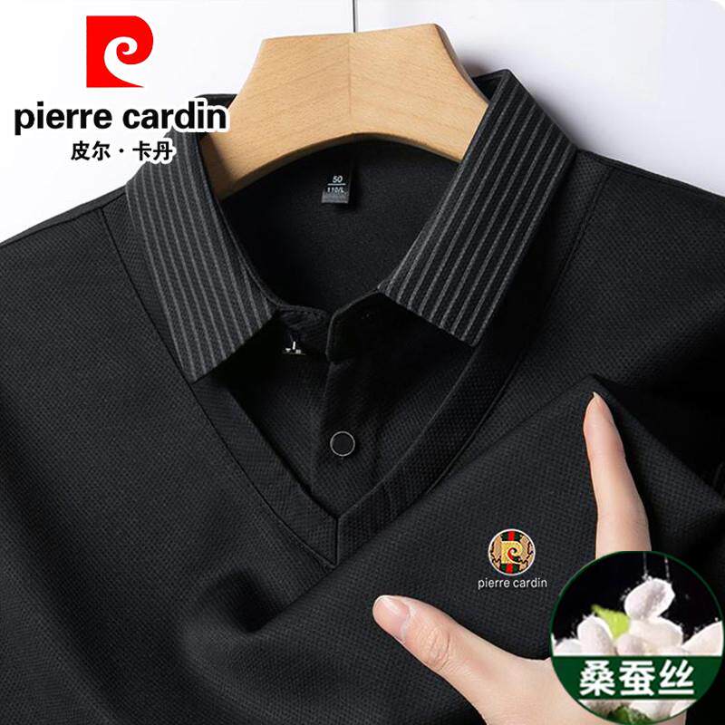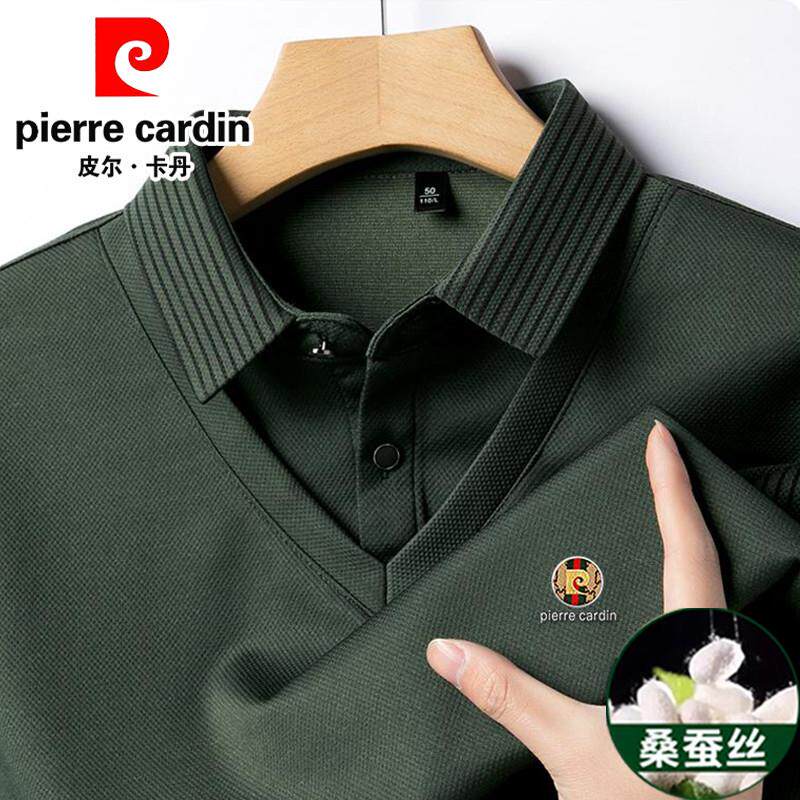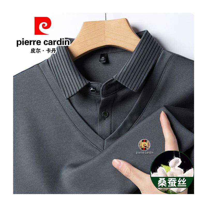 皮尔卡丹桑蚕丝羊绒假两件长袖t恤男秋冬新款中年商务休闲polo衫