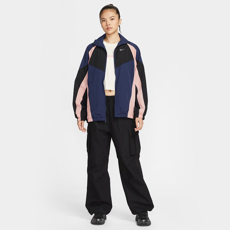 耐克女子外套秋新款休闲拼接透气立领茄克健身教练夹克HV4030-410