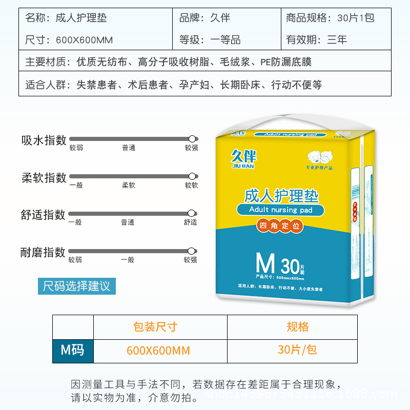 久伴60x60成人护理垫男女老人婴儿专用30片装产褥垫子产孕妇护垫