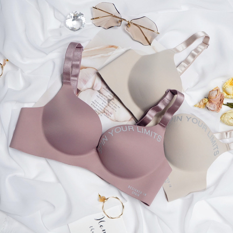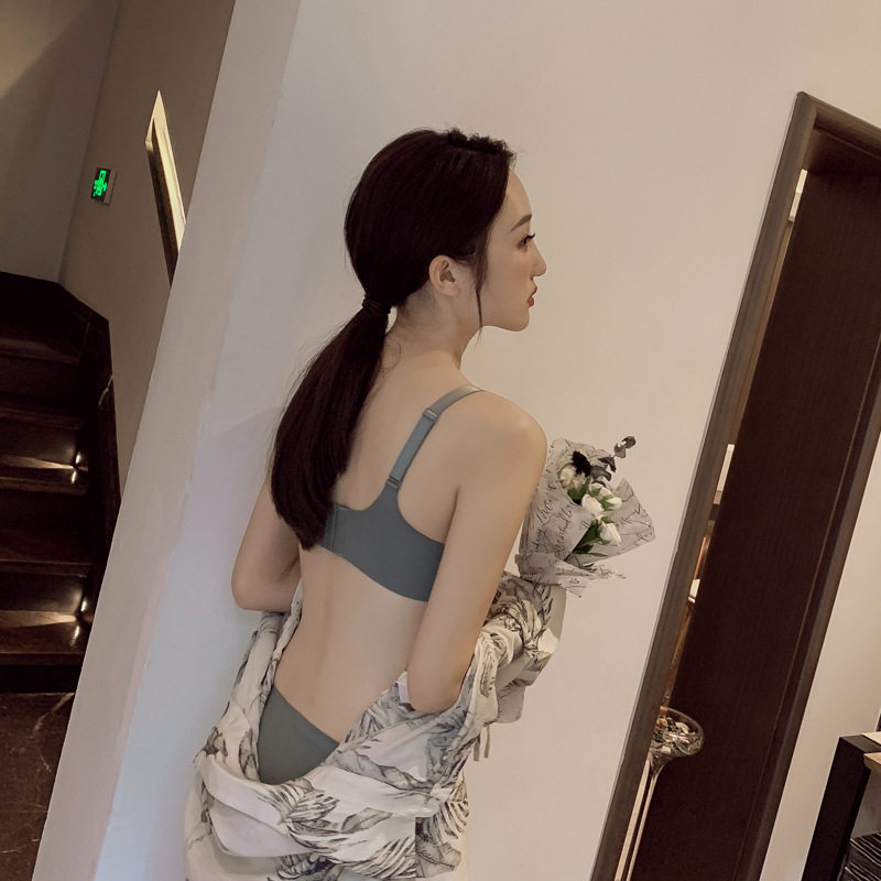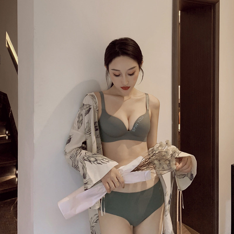 新款性感光面无钢圈一片式聚拢少女内衣小胸上托调整型文胸套装