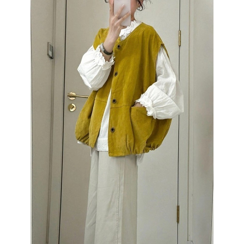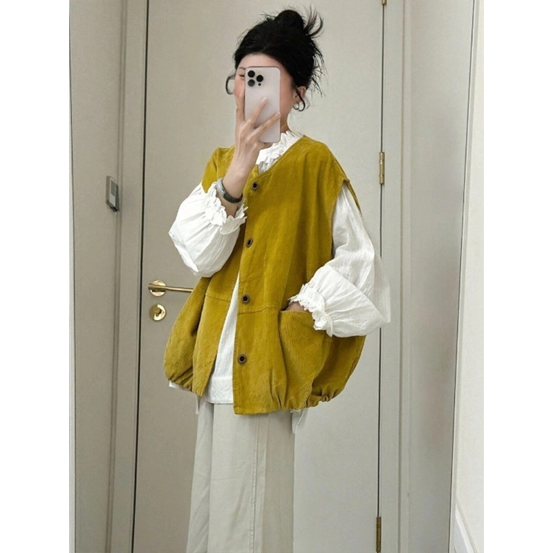 黄色宽松百搭背心马甲女秋季2025新款内搭白色长袖衬衫上衣两件套