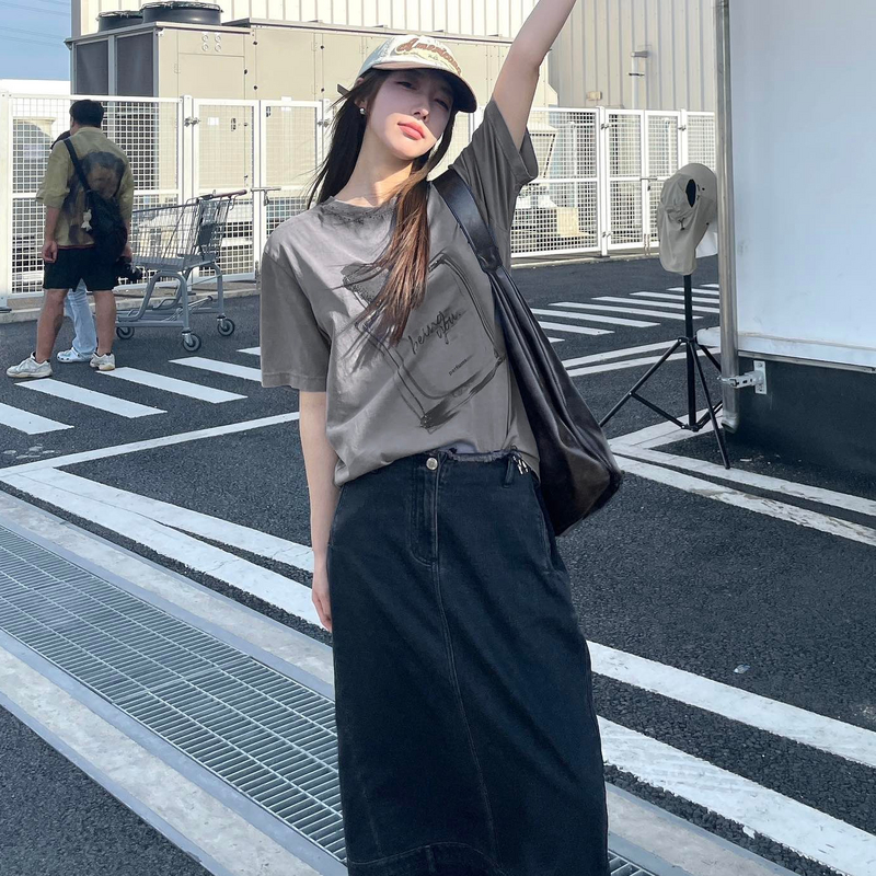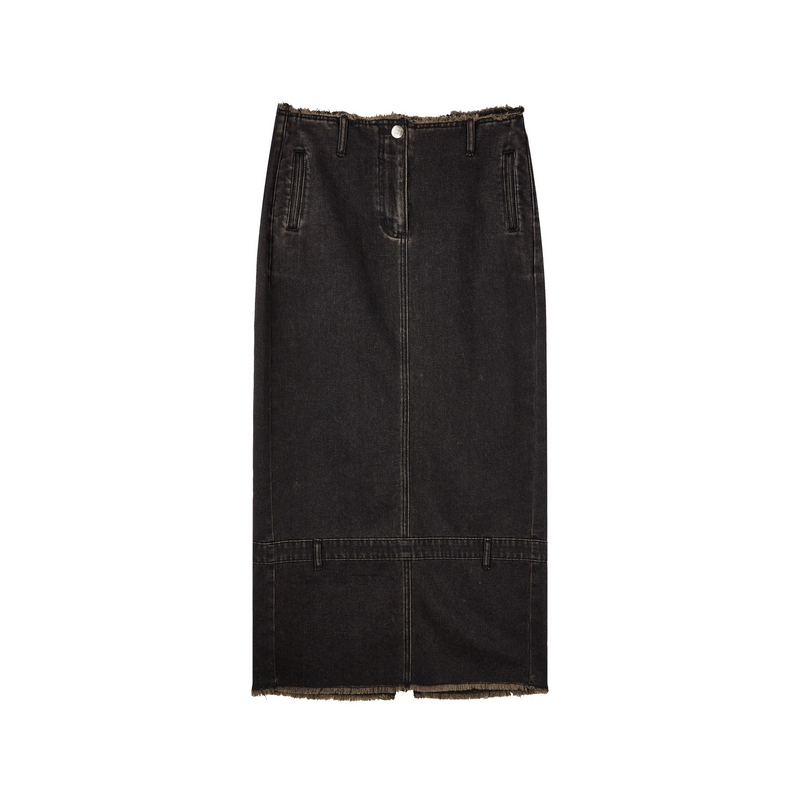 U/TI酷感毛边半身裙女通勤风简约开衩高腰直筒裙尤缇2025秋季新款