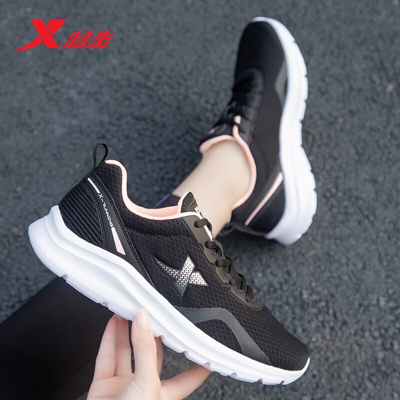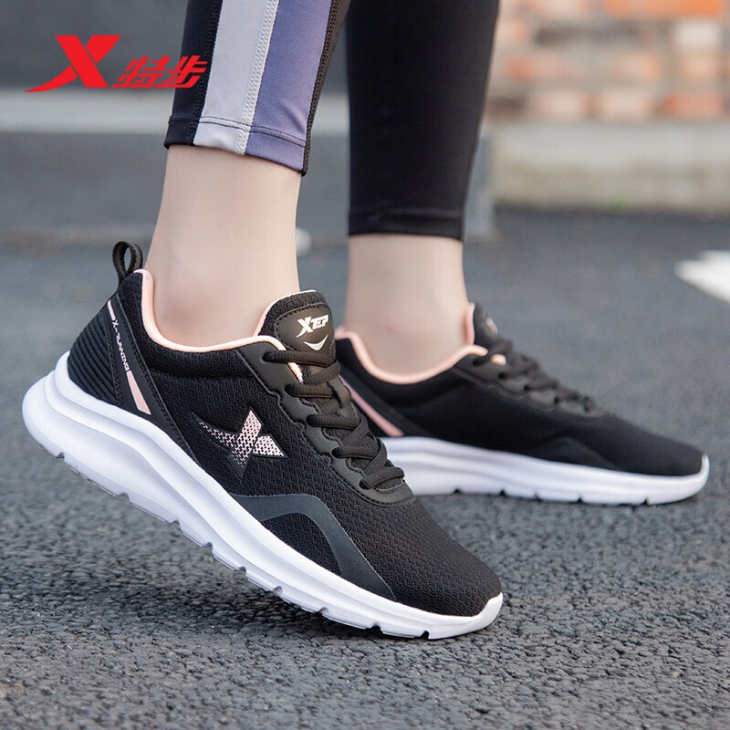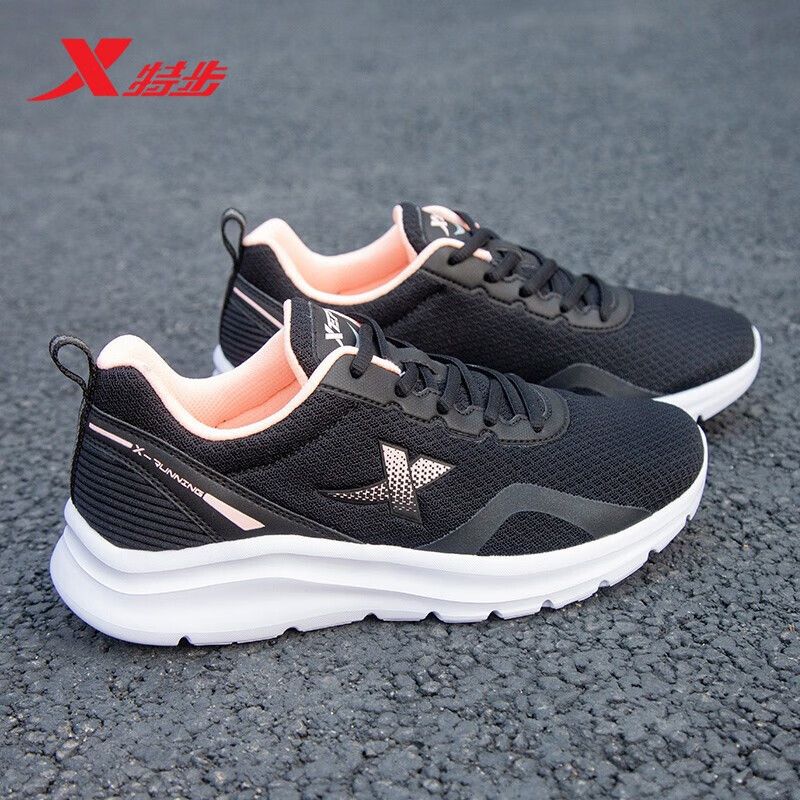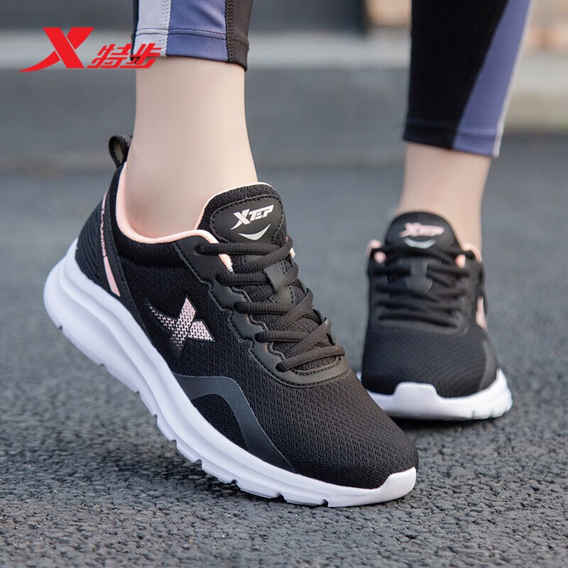 特步女鞋跑步鞋休闲运动鞋2025新款秋季轻便透气网面黑色耐脏跑鞋