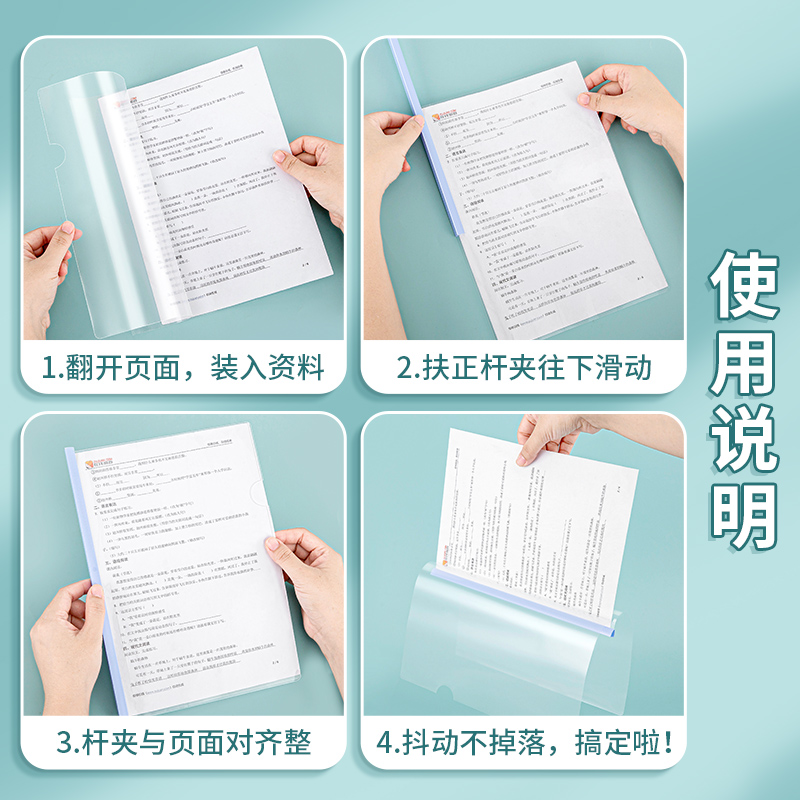 特厚a4拉杆夹办公用品透明抽杆夹塑料资料册夹简历试卷文件夹学生用品书皮本夹子文件袋收纳夹档案分类夹批发