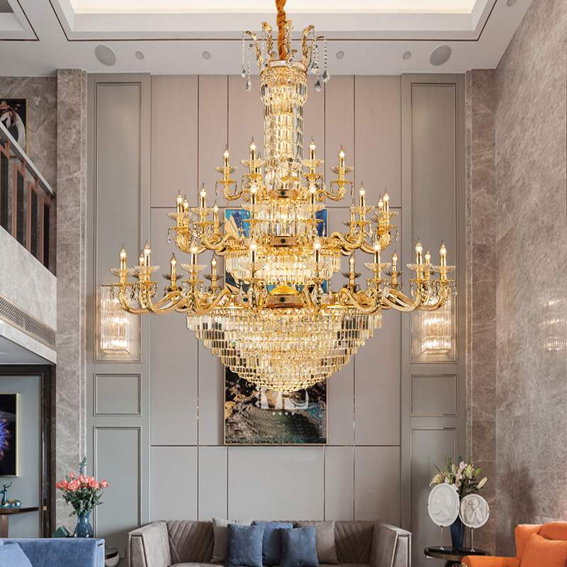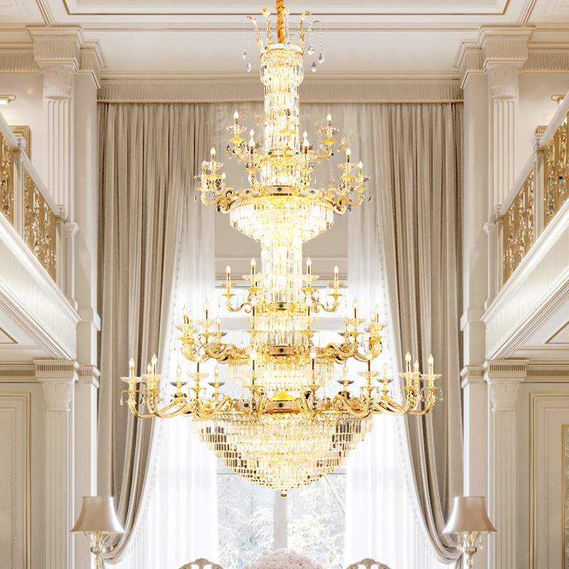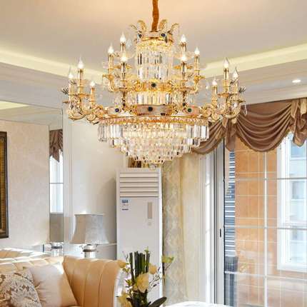 欧式客厅全铜吊灯奢华K9水晶彩贝餐厅灯中山灯饰别墅复式楼大厅灯