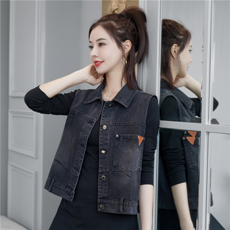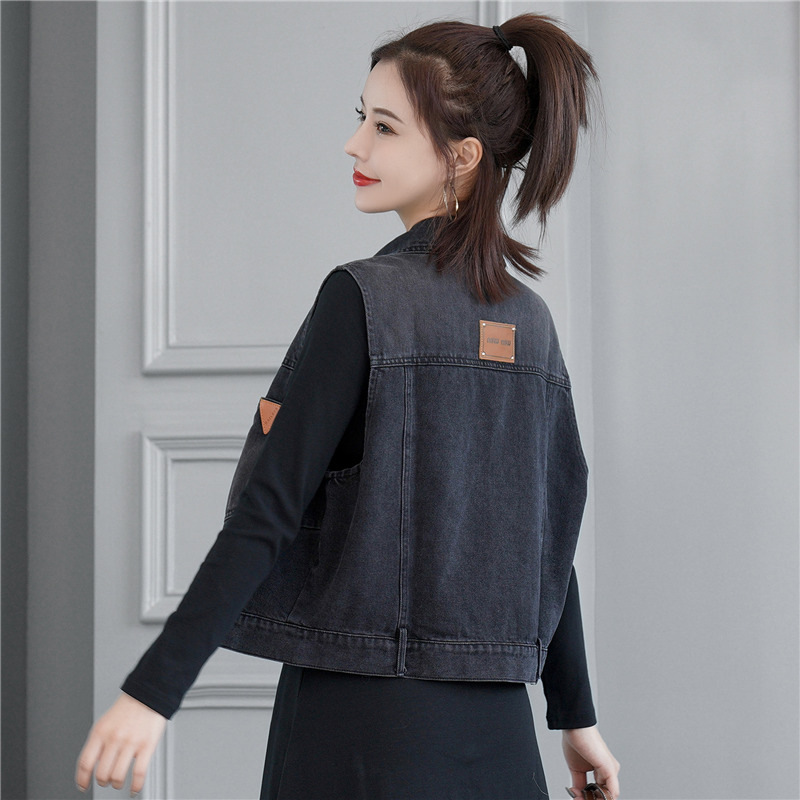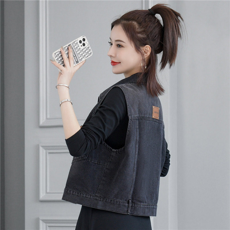 女士春秋短款牛仔衣马甲百搭马夹