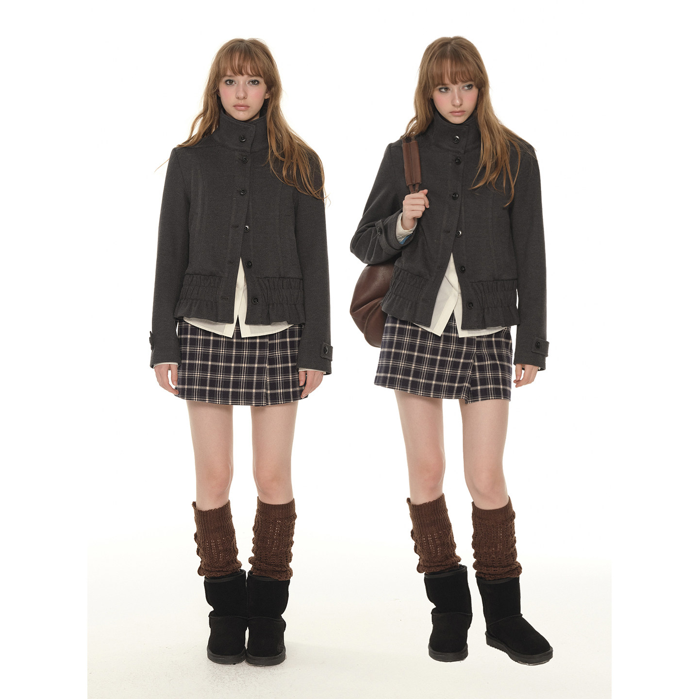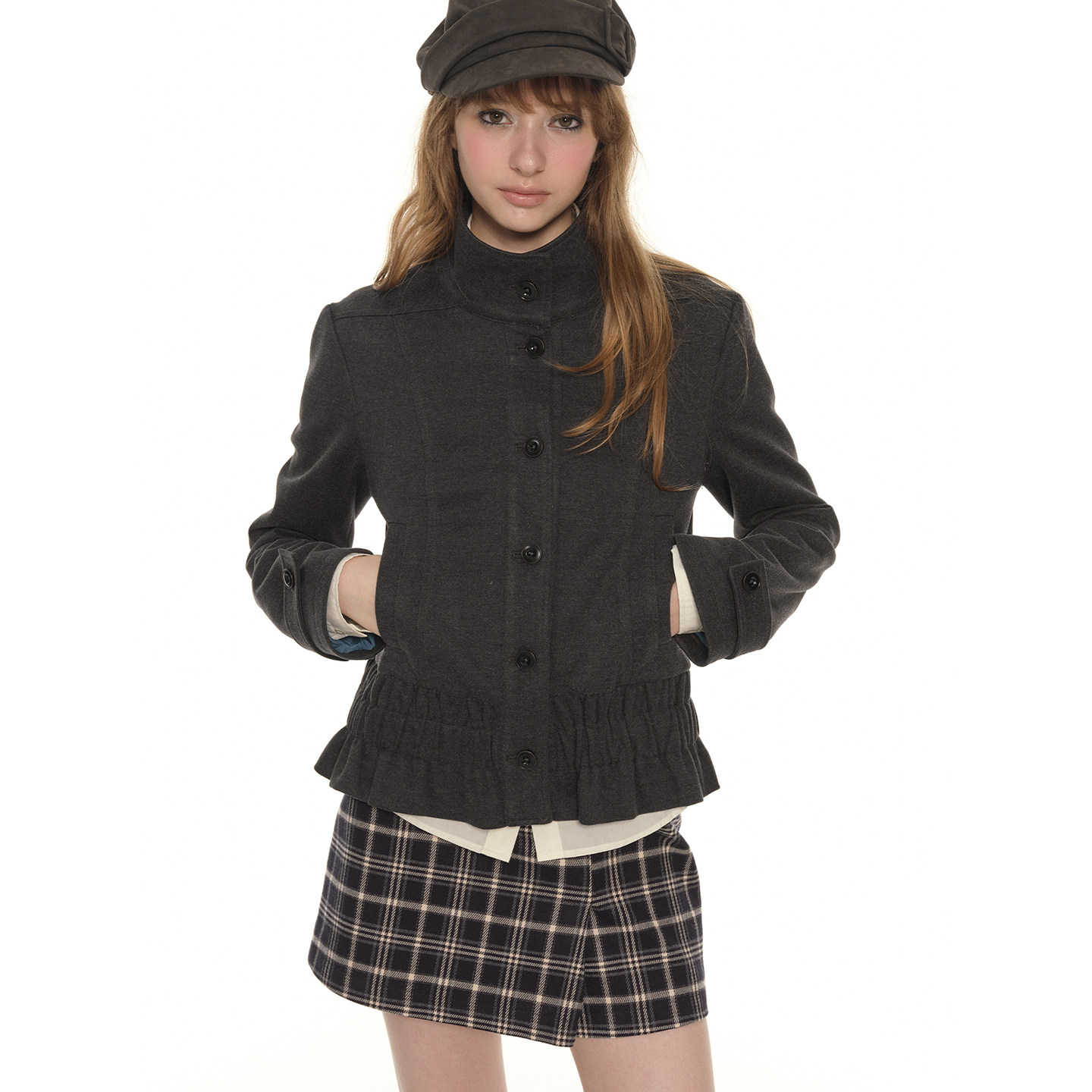 UNRETRO复古立领正肩修身收腰毛呢大衣女冬季新款短款小西装外套