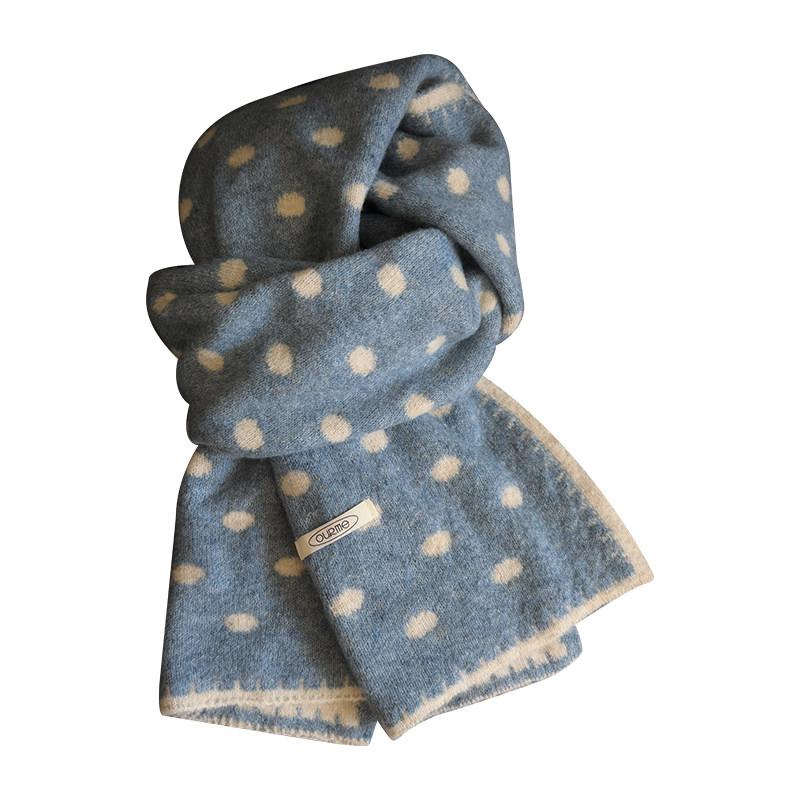韩系设计感波点双面针织围巾女秋冬季文艺感复古保暖百搭护颈围脖