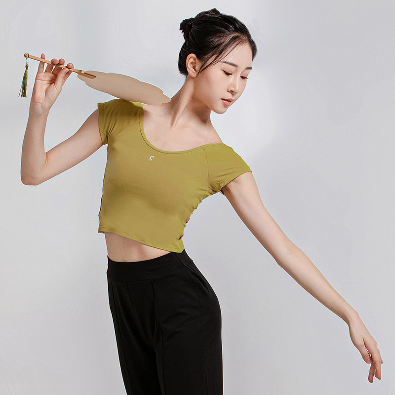 Sansha芭蕾舞服女V领交叉设计显瘦形体服专业舞蹈上衣现代舞服