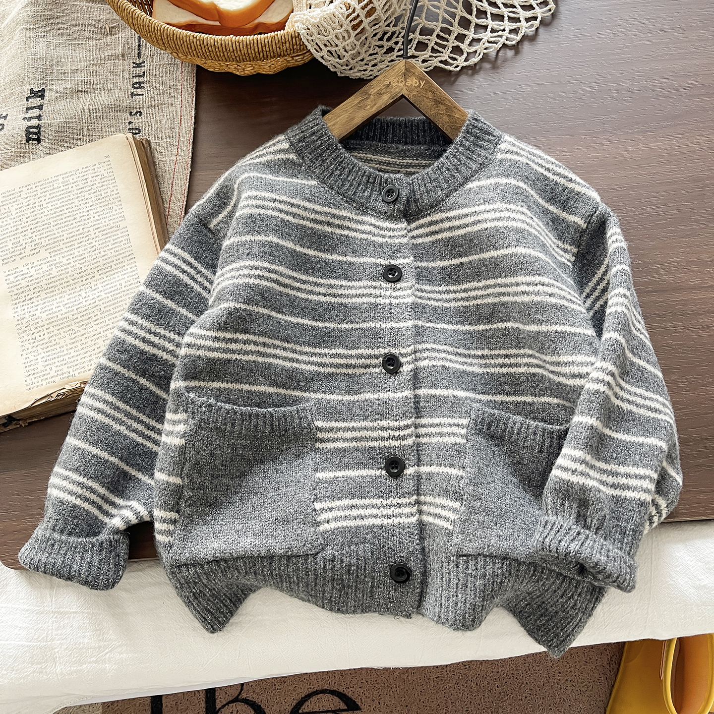 男童毛衣秋冬儿童针织开衫外套宝宝羊绒衫洋气中小童韩系条纹上衣