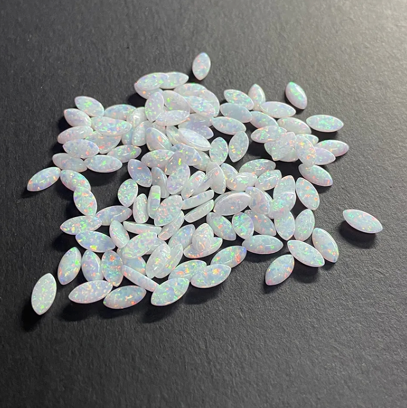 Opal白色马眼形欧泊裸石平底素面炫彩白澳宝欧珀戒面戒指耳钉diy