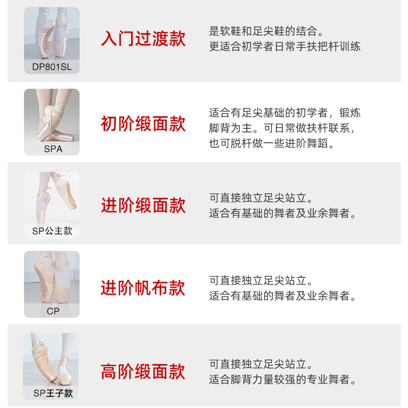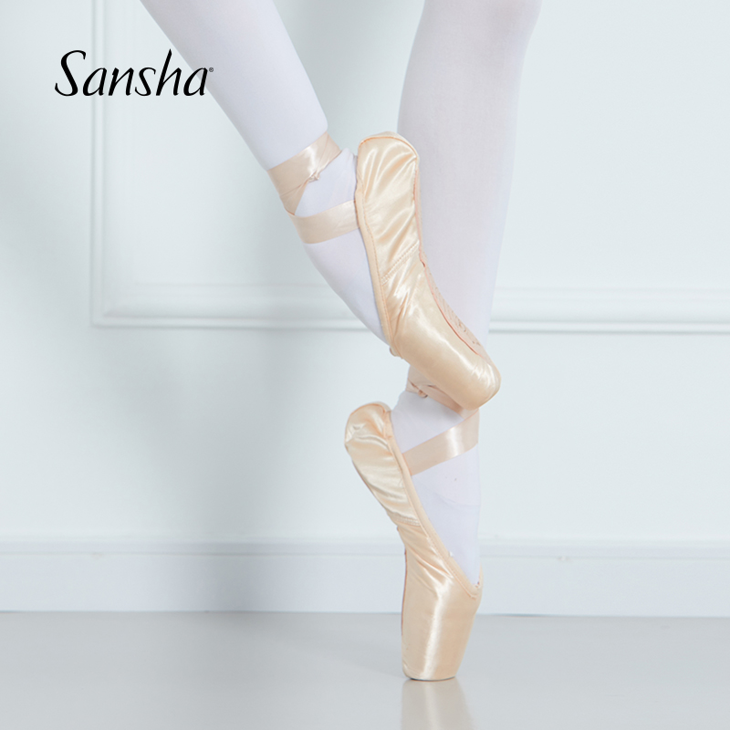 Sansha 三沙绑带芭蕾舞鞋初学缎面足尖鞋 芭蕾练功鞋硬鞋入门级SP