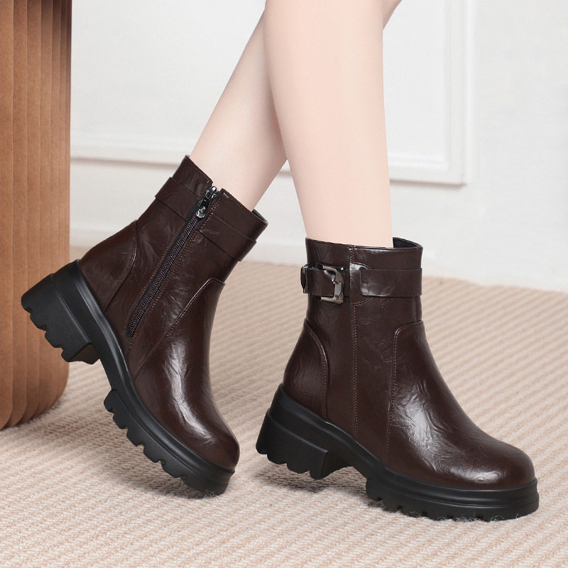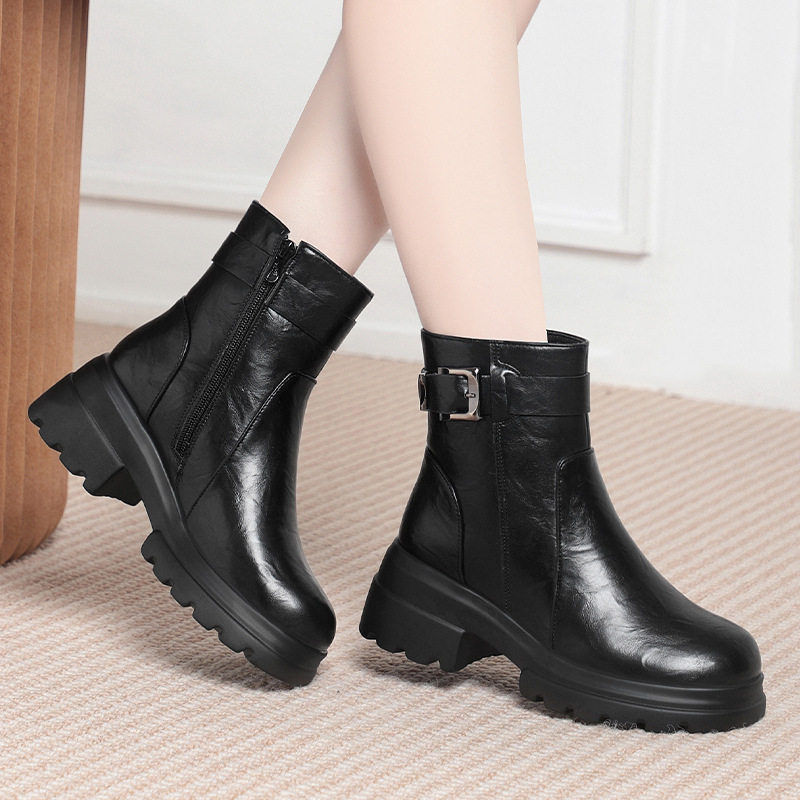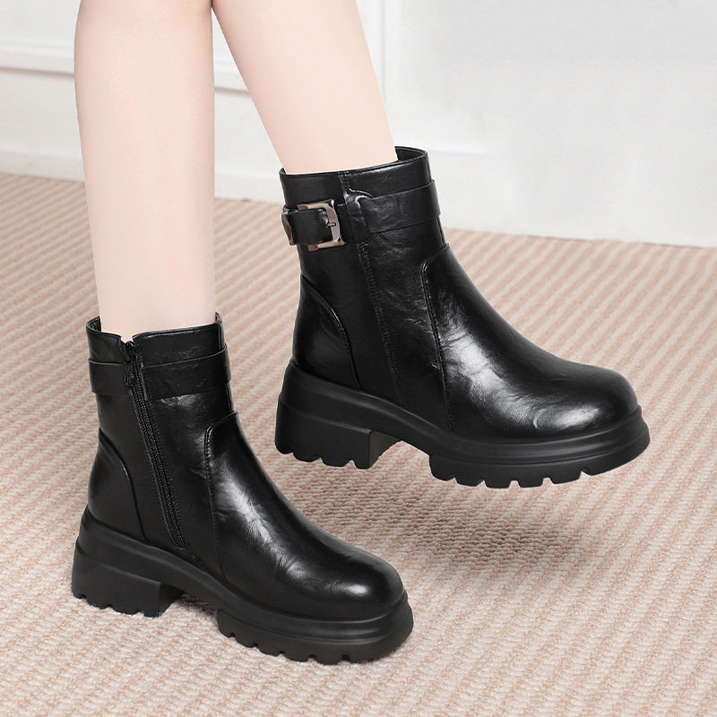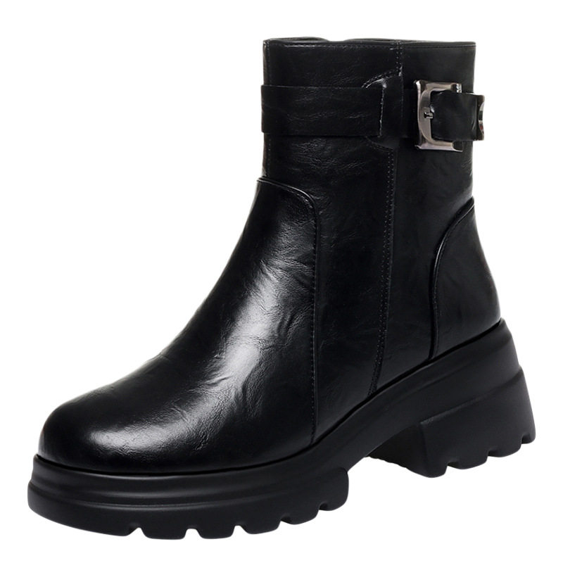 一件代发英伦风女士皮鞋女款马丁靴冬季加绒女鞋高跟棉鞋厚底短靴