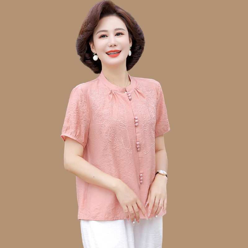 新中式妈妈夏装短袖上衣2025新款两件套贵夫人中老年人女夏季套装
