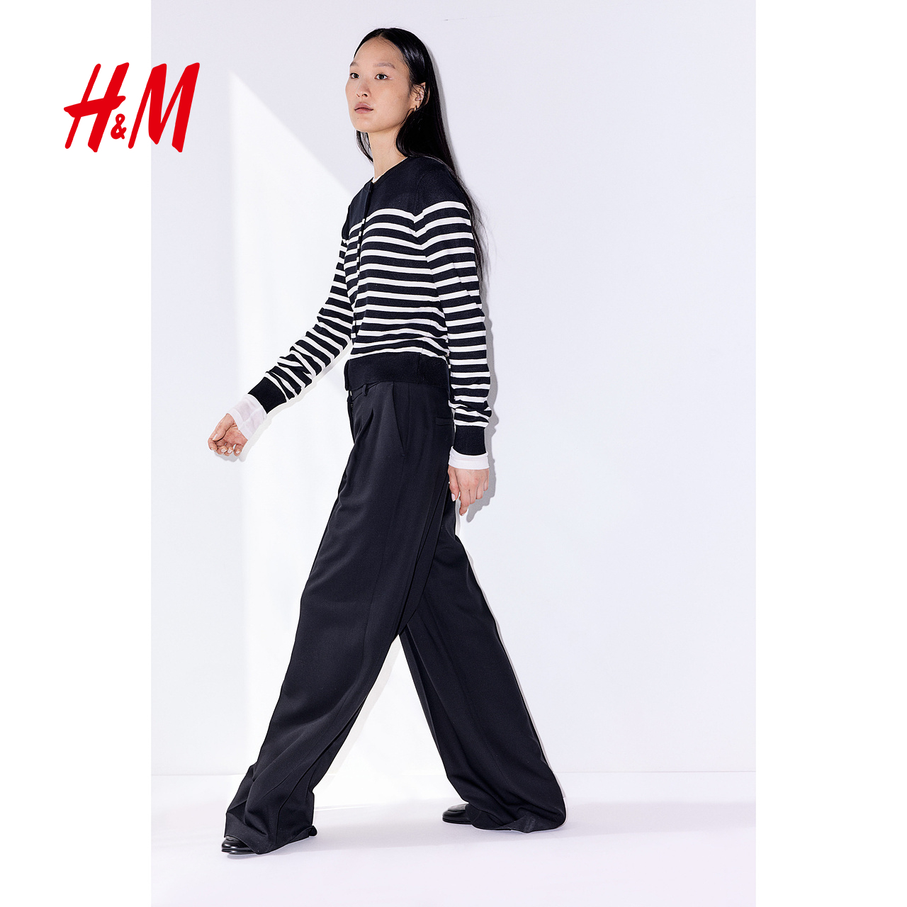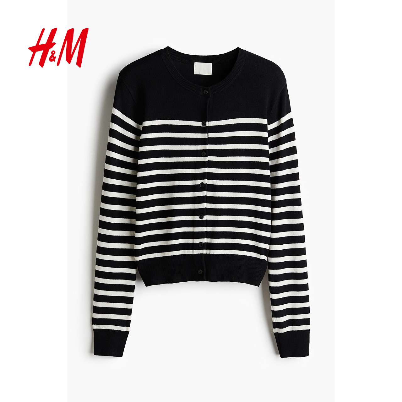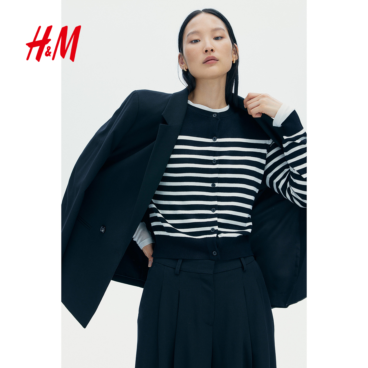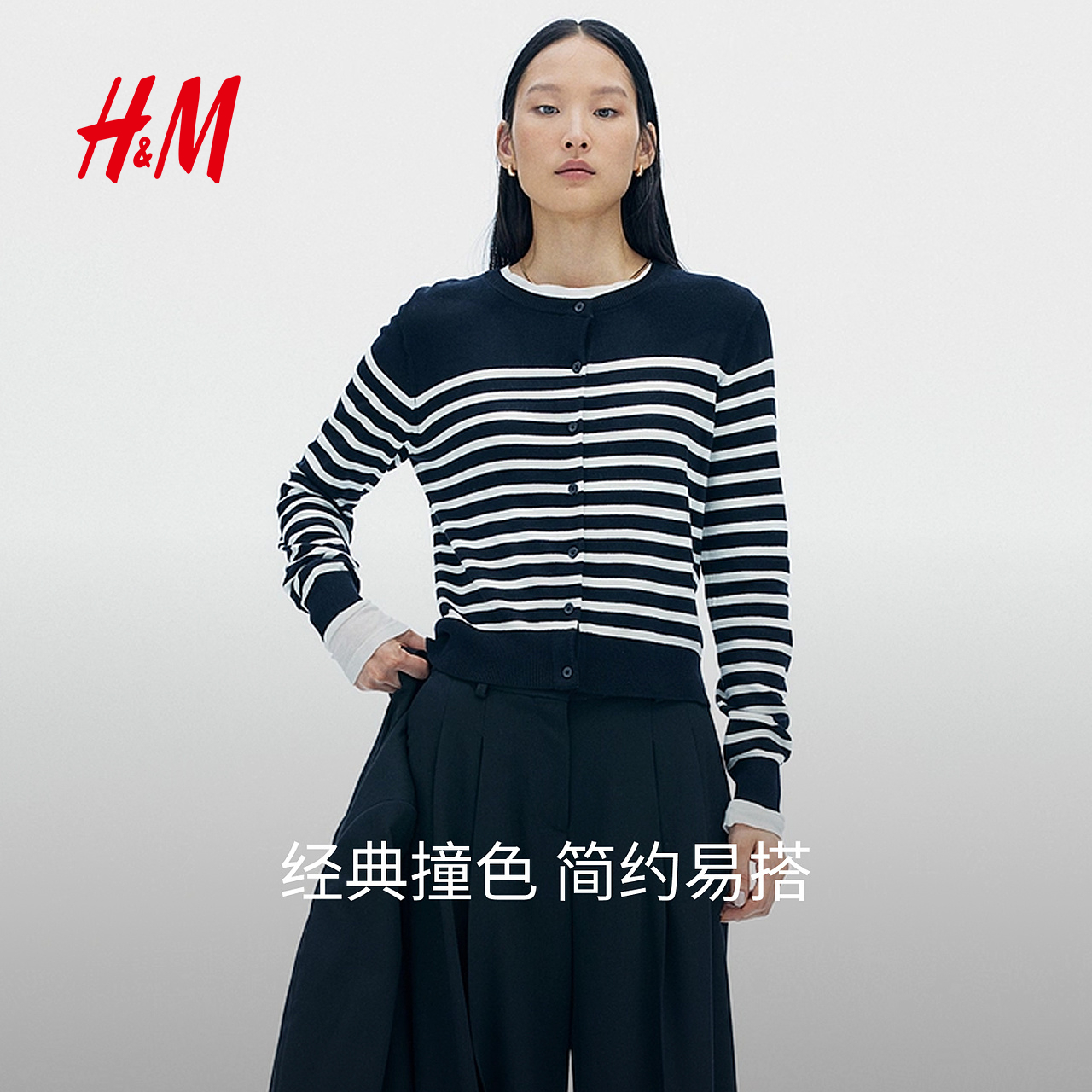 HM女装毛针织衫秋季慵懒舒适打底衫短款开衫薄款外套0579541
