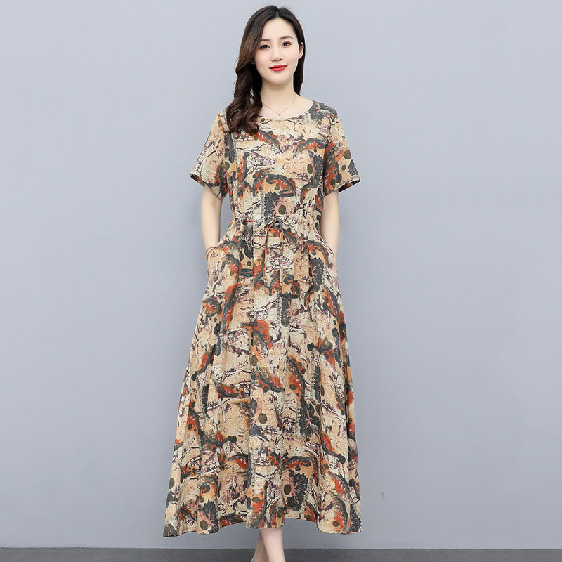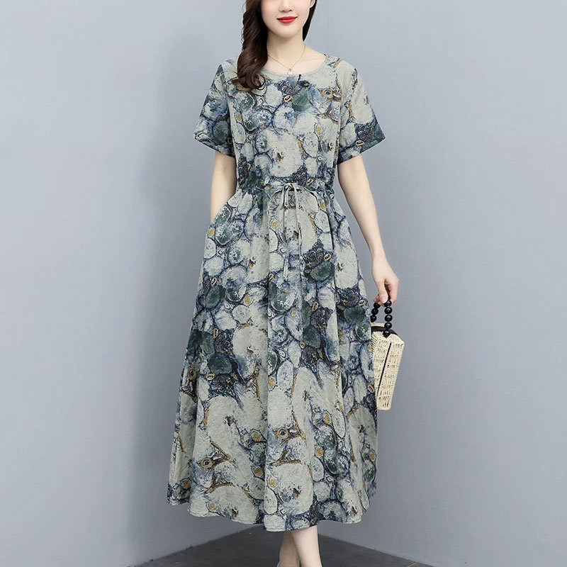 素雅订制女装原创品牌旗舰店2025新款水墨印花中长款棉麻连衣裙女