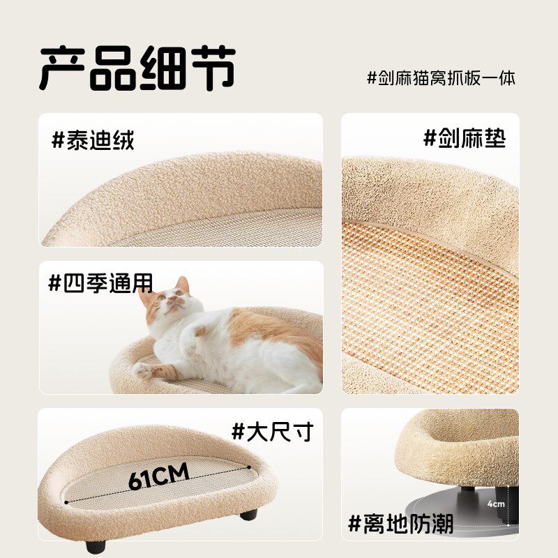 四季通用猫床猫抓板猫窝一体剑麻耐抓沙发猫咪专用耐磨不掉屑凉窝