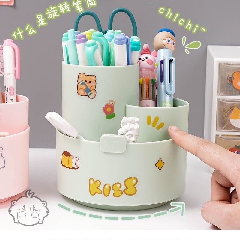 360度旋转笔筒可爱男女孩子青年桌面文具收纳盒多功能大容