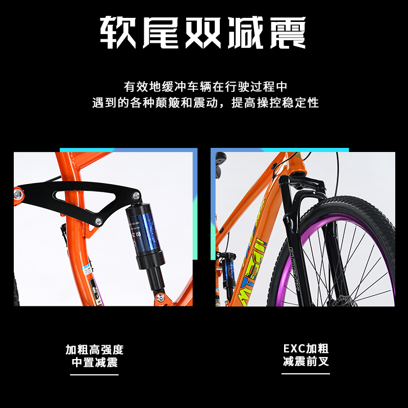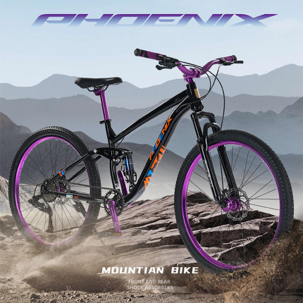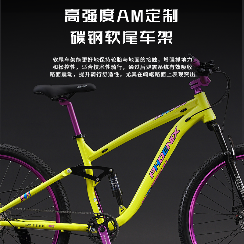 凤凰山地自行车成人男女士学生车蓝图高强度软尾双减震土坡车