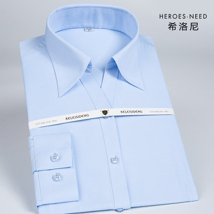 浅蓝色商务职业装v领长袖女衬衫