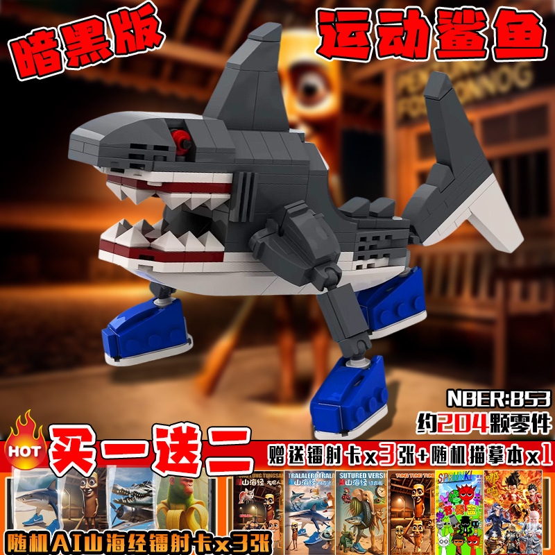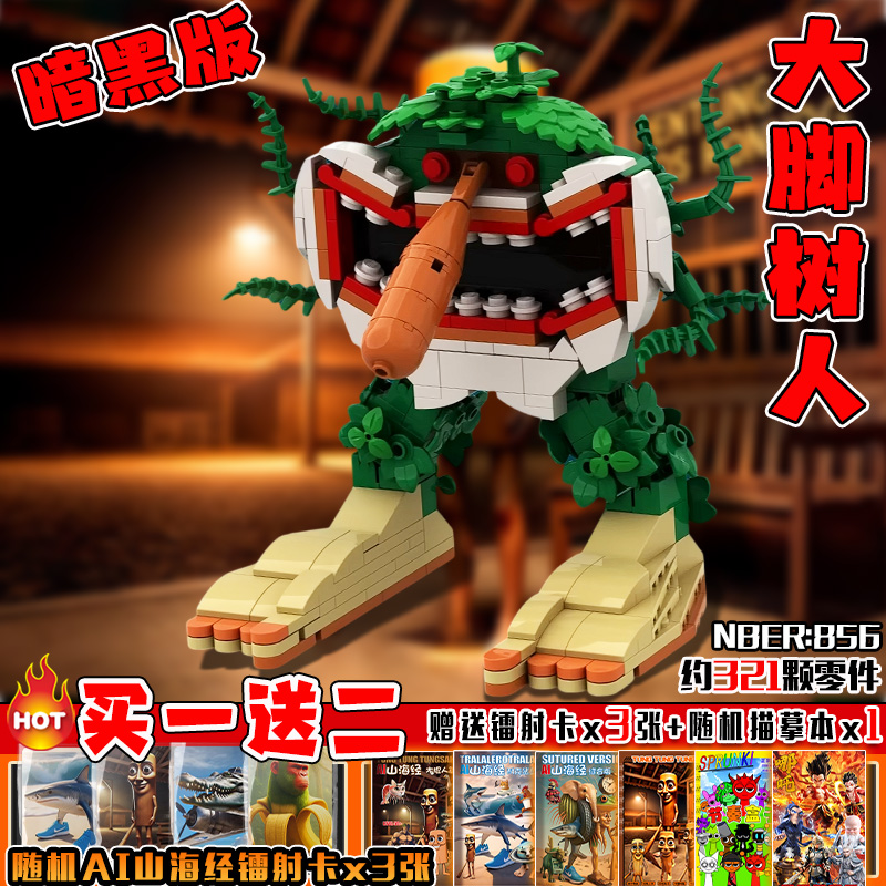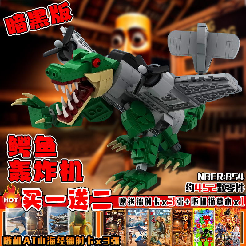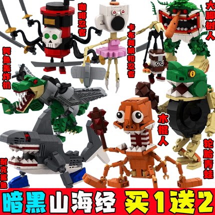 AI山海经暗黑变异版木棍人鳄鱼轰炸机乐le高积木神兽大战手办玩具