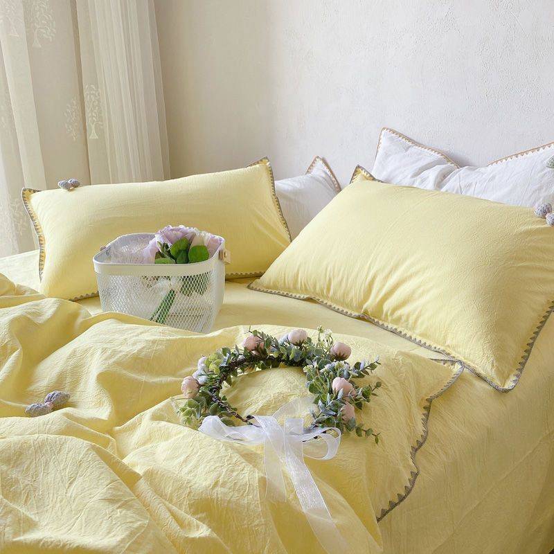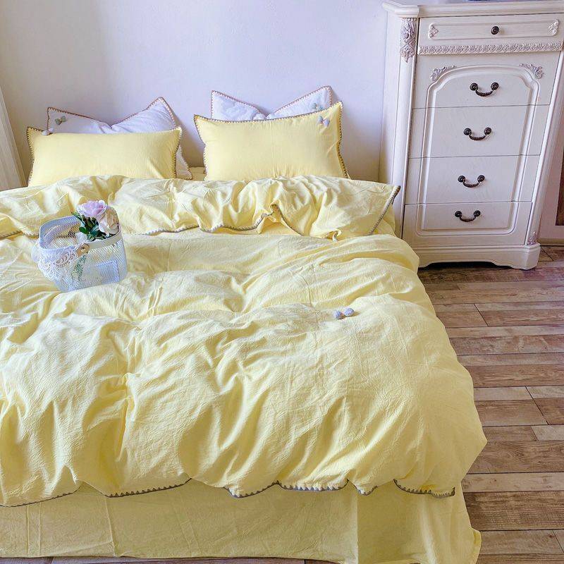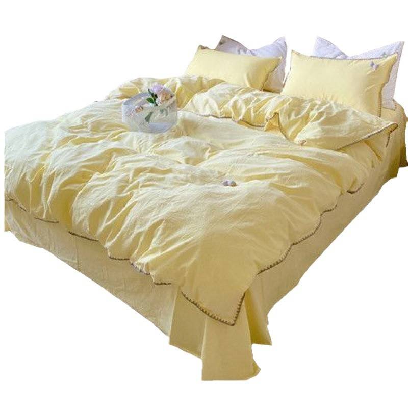 被套四件套纯棉裸睡100水洗棉床单床笠四季款纯色床上用品