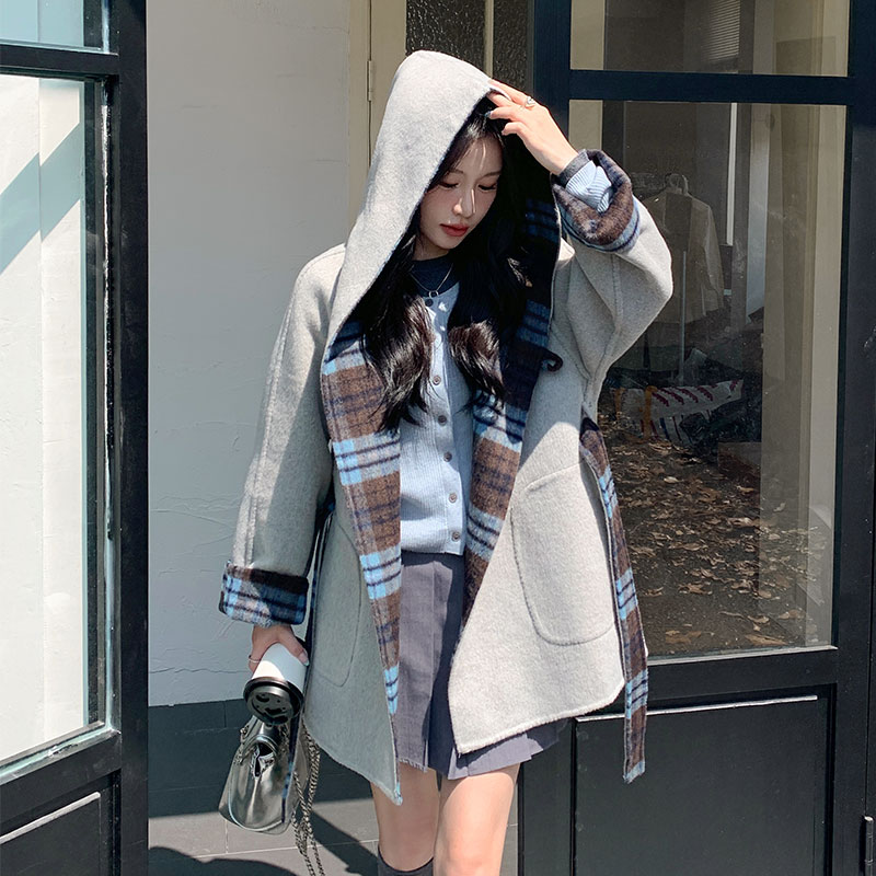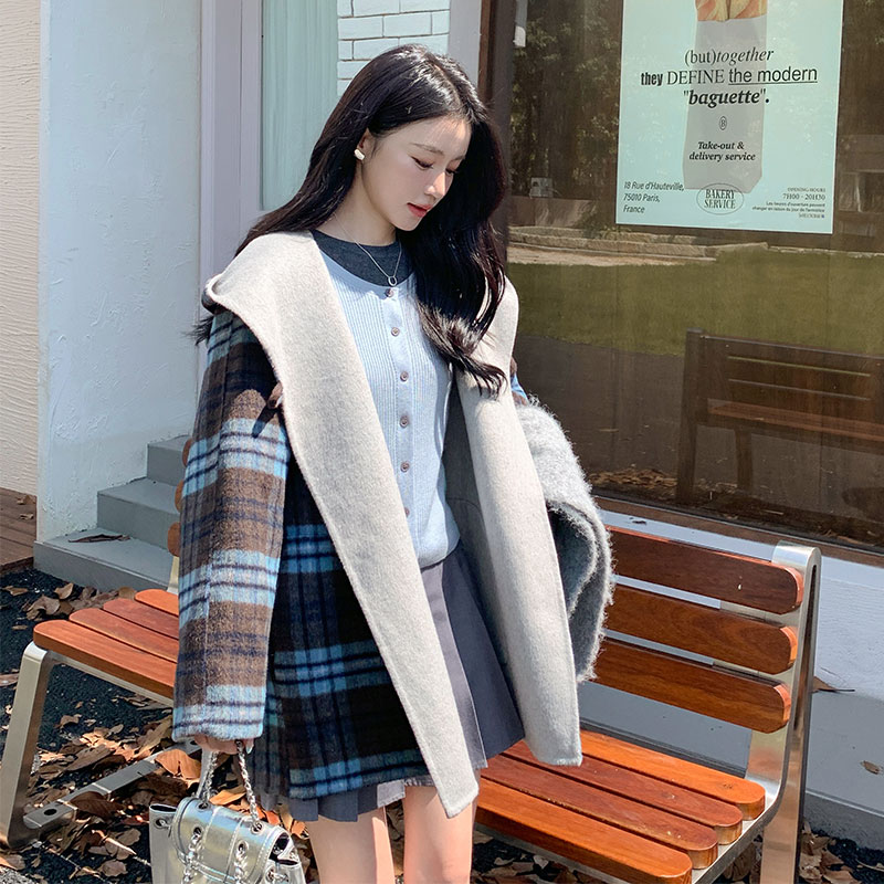 韩版学院风正反两穿格子呢大衣女2025年冬季新款洋气穿搭毛呢外套