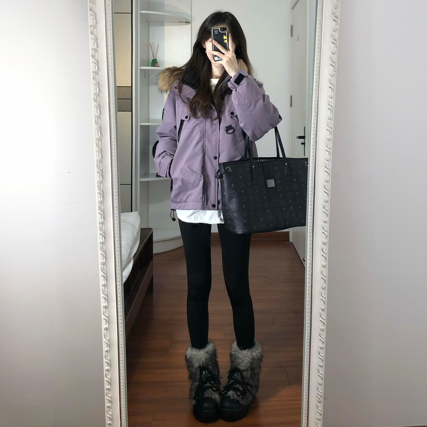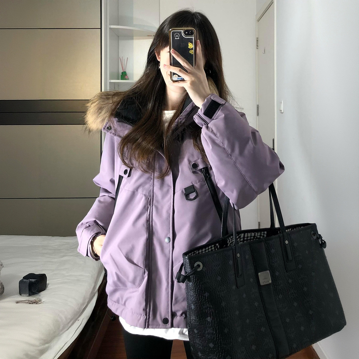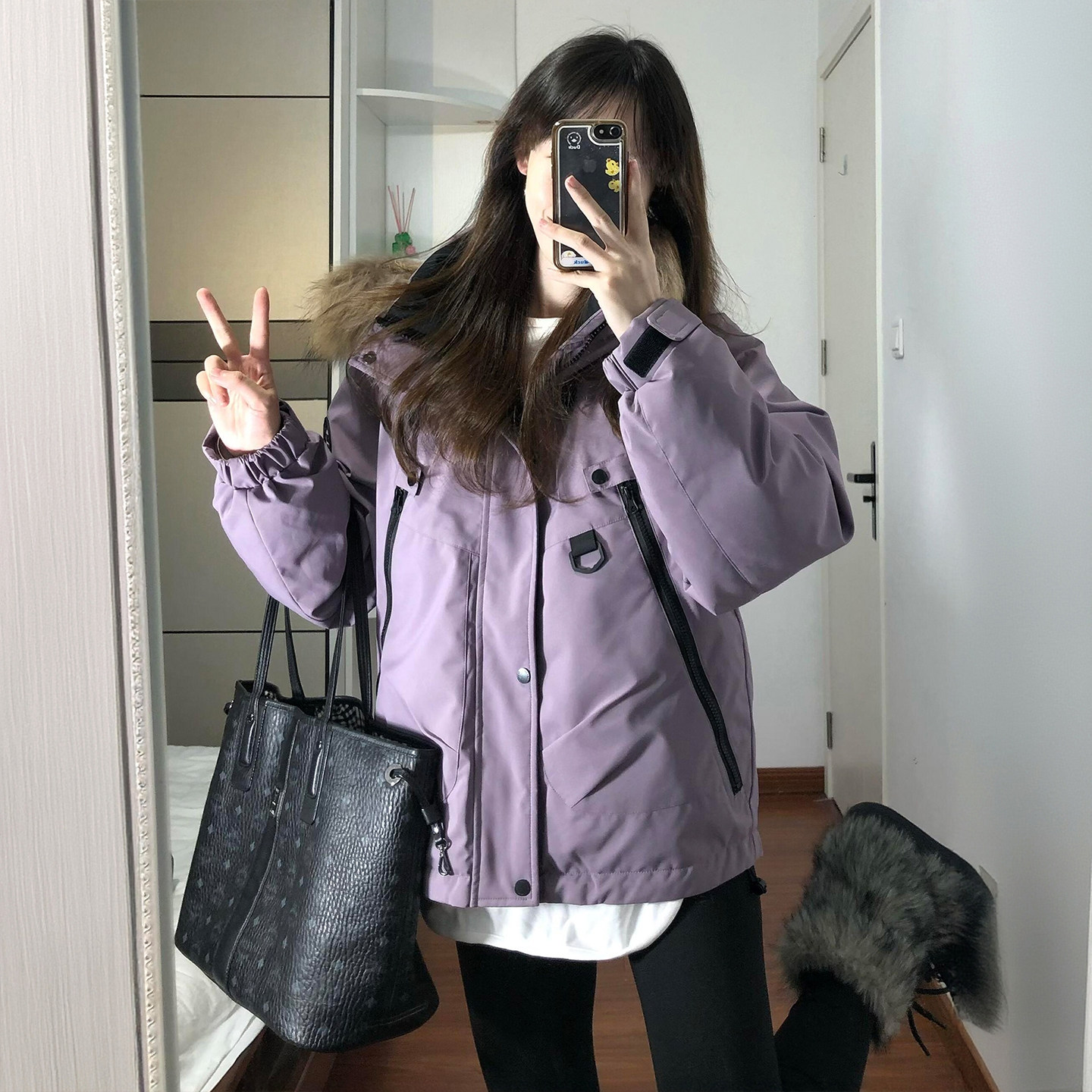 300斤大码女装紫色加厚保暖工装棉服女胖mm高级感显瘦不臃肿棉衣