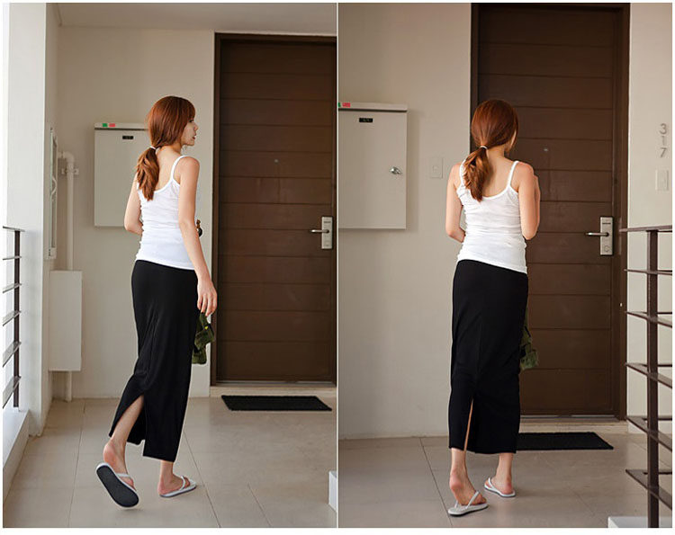 夏秋装莫代尔后开叉高腰半身裙女修身包臀一步裙半身长裙大码小码