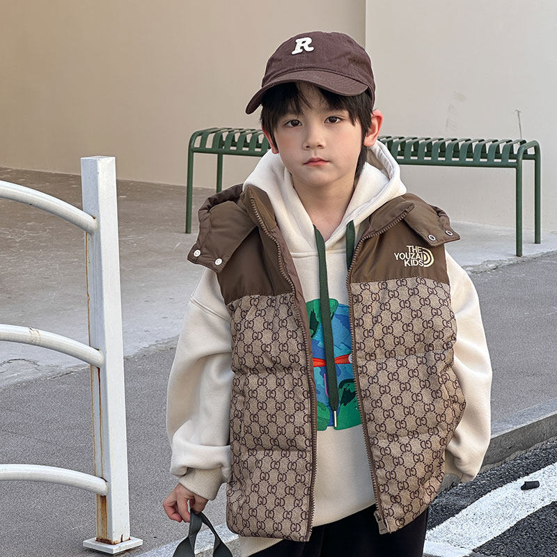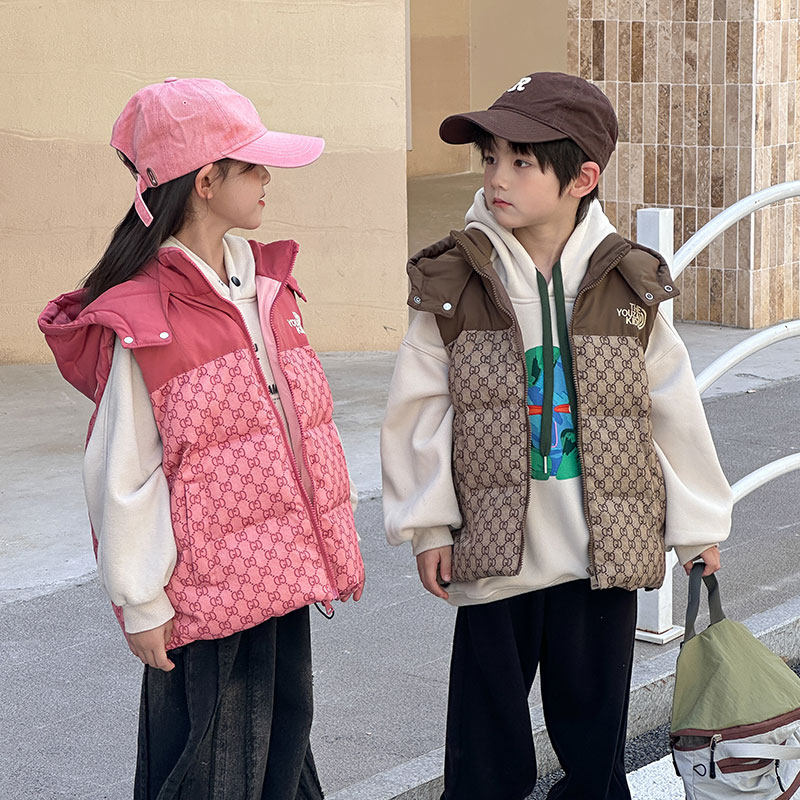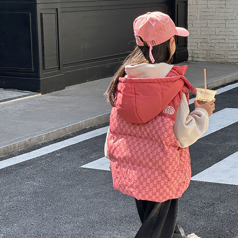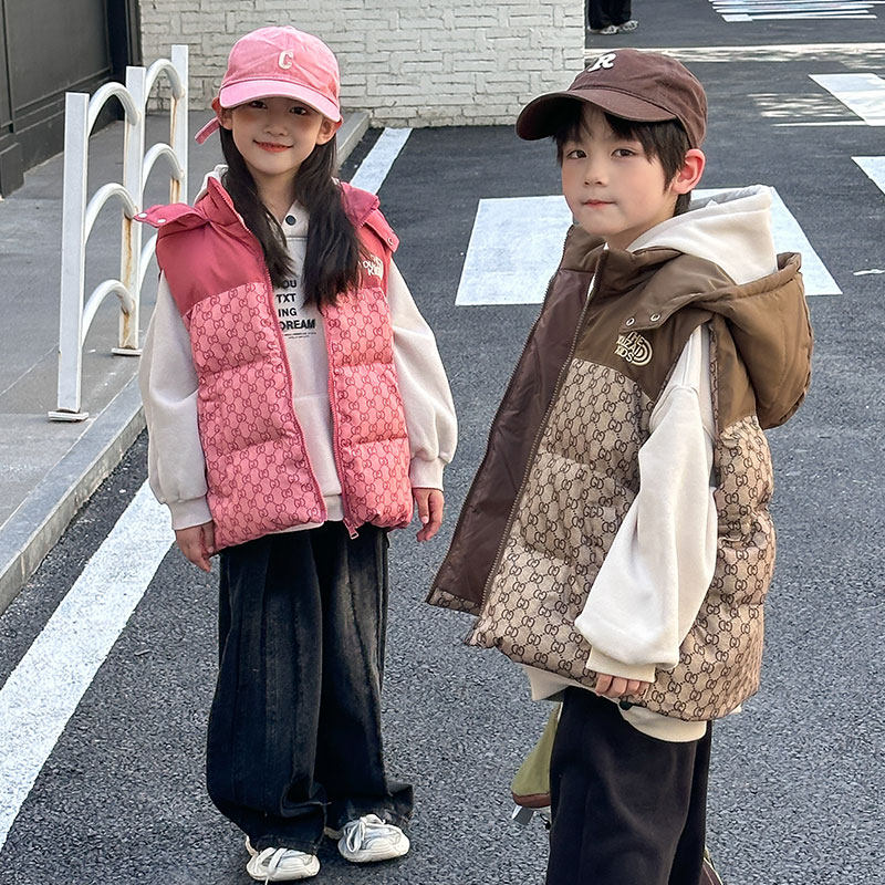 儿童秋冬连帽绒丝马甲宝宝秋冬季加厚韩版时尚上衣女童潮外穿上衣
