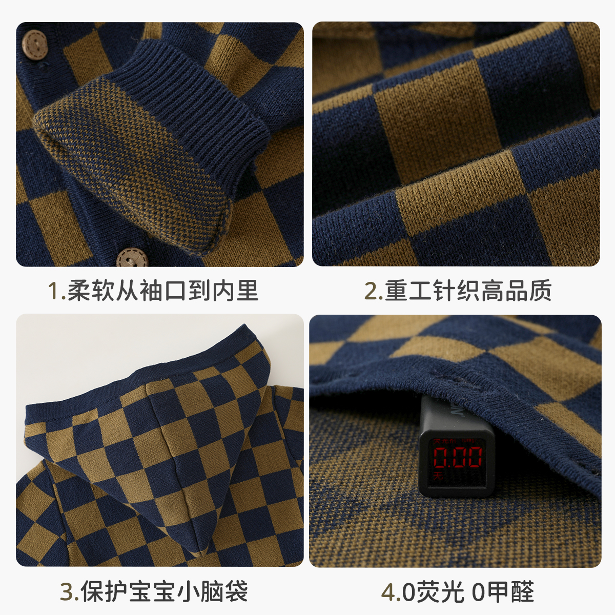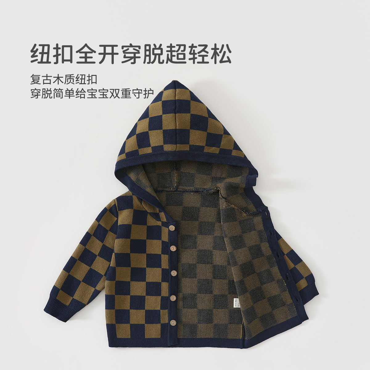 婧麒婴儿外套春秋男童毛衣宝宝针织儿童女宝秋装外出衣服连帽上衣