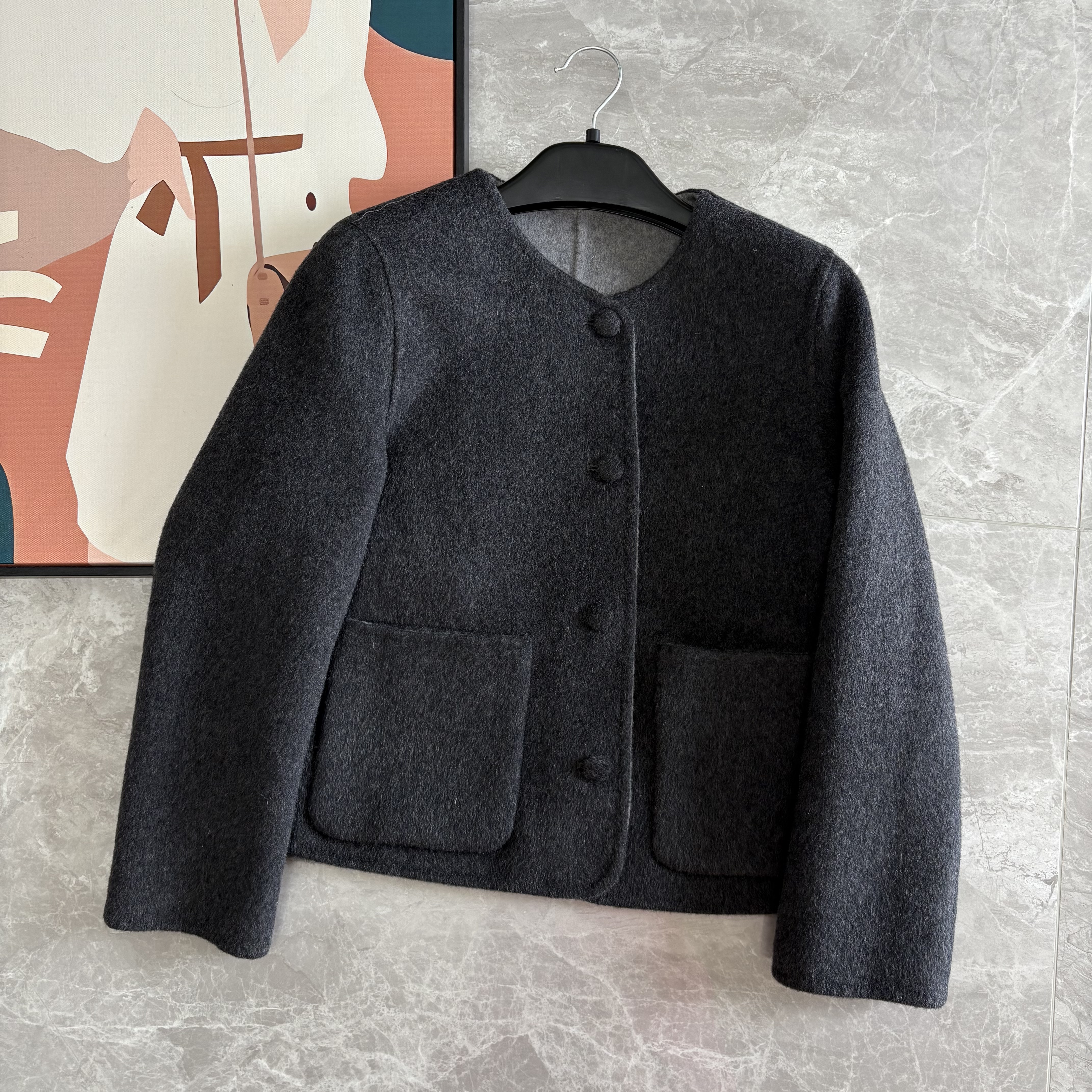 2025秋冬撞色两面可穿双面羊毛大衣女装短小个子呢子开衫外套上衣