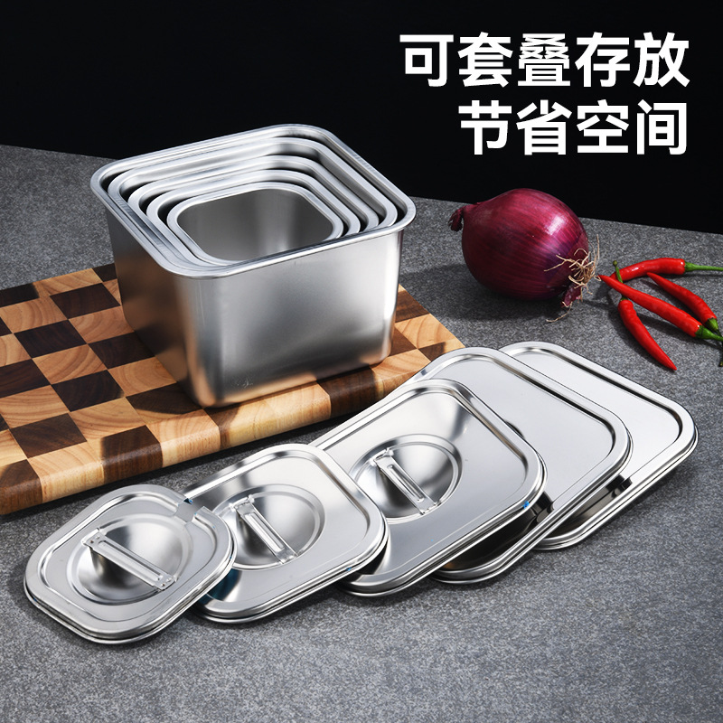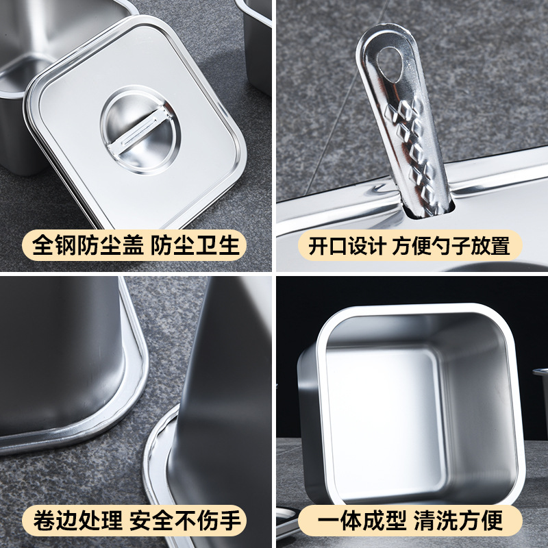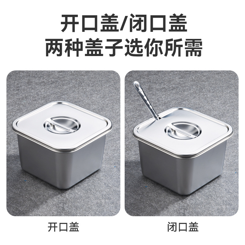不锈钢方形味盅带盖果酱盆商用调料罐厨房油盆桶佐料收纳盒调味缸