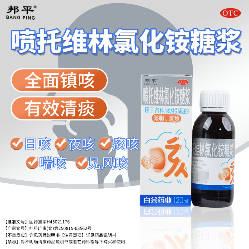 邦平喷托维林氯化铵糖浆夜老咳嗽化痰止咳慢性支气管炎感冒咳嗽药