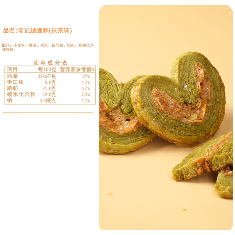 【澳门葡记蝴蝶酥抹茶味308g】扁桃仁糕点酥饼干零食小吃手信特产