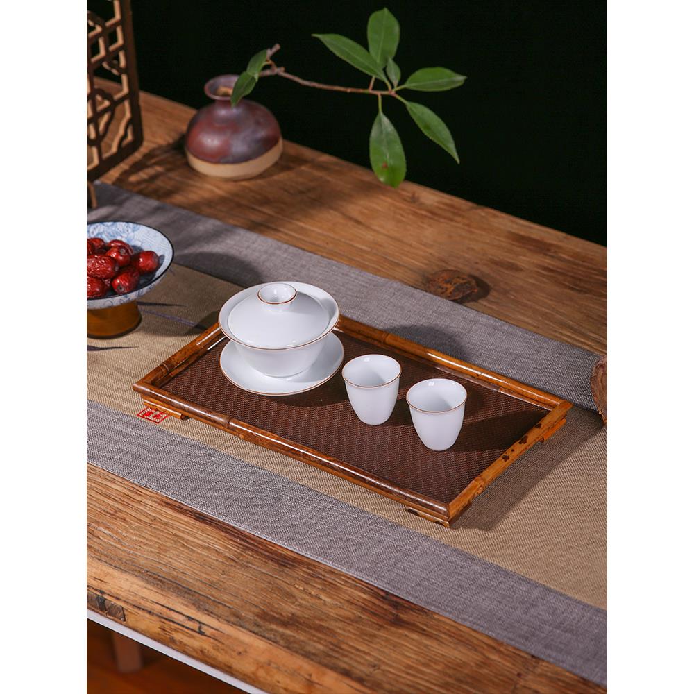 手工竹编云妃茶台泡台干泡盘藤编茶盘收纳盘托盘竹器竹制品梅鹿竹