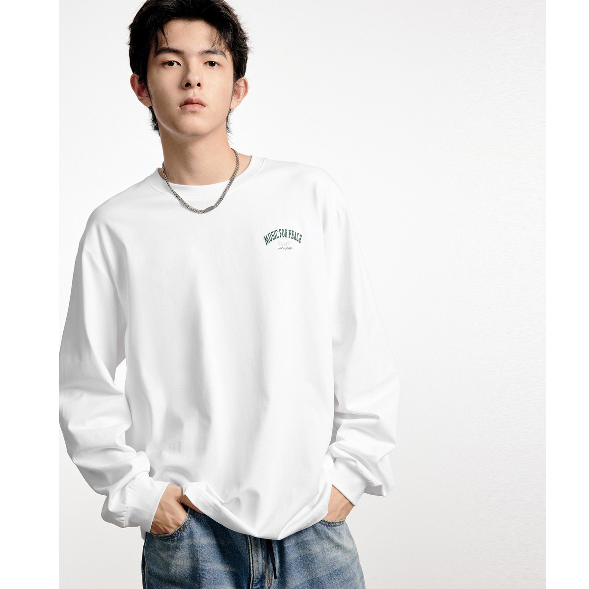 【音乐青年】太平鸟男装 2025年秋季新款刺绣长袖T恤潮B1CPD3301