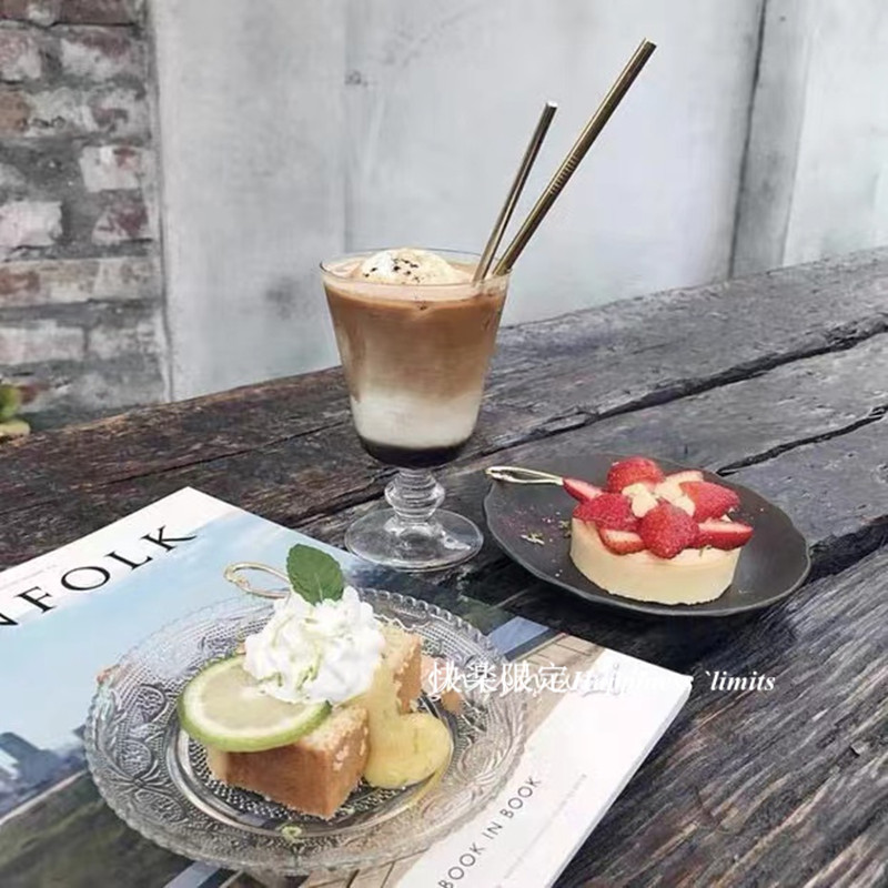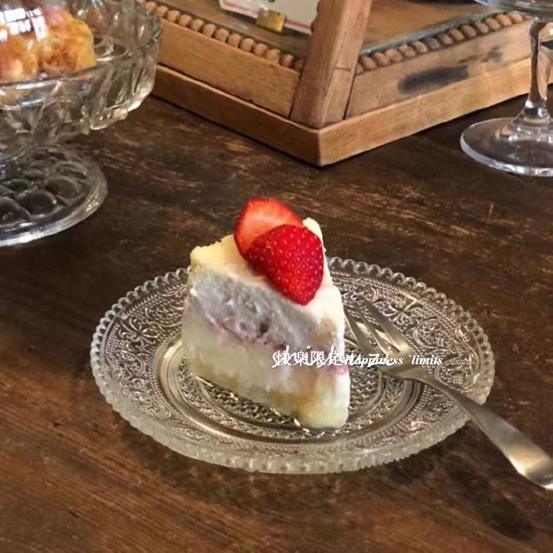 ins高颜值玻璃盘 复古浮雕花纹玻璃碟早餐盘果盘零小食碟平盘圆形
