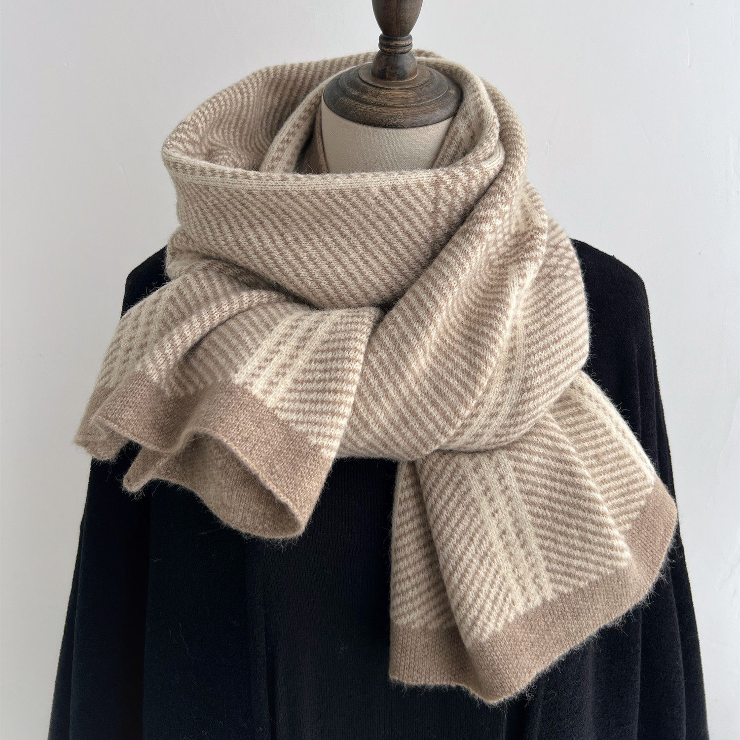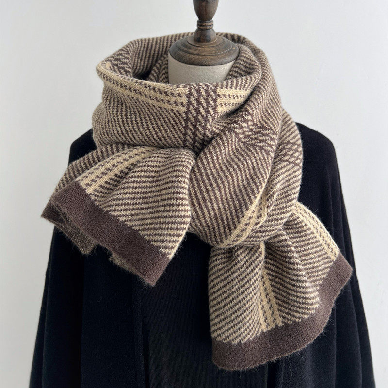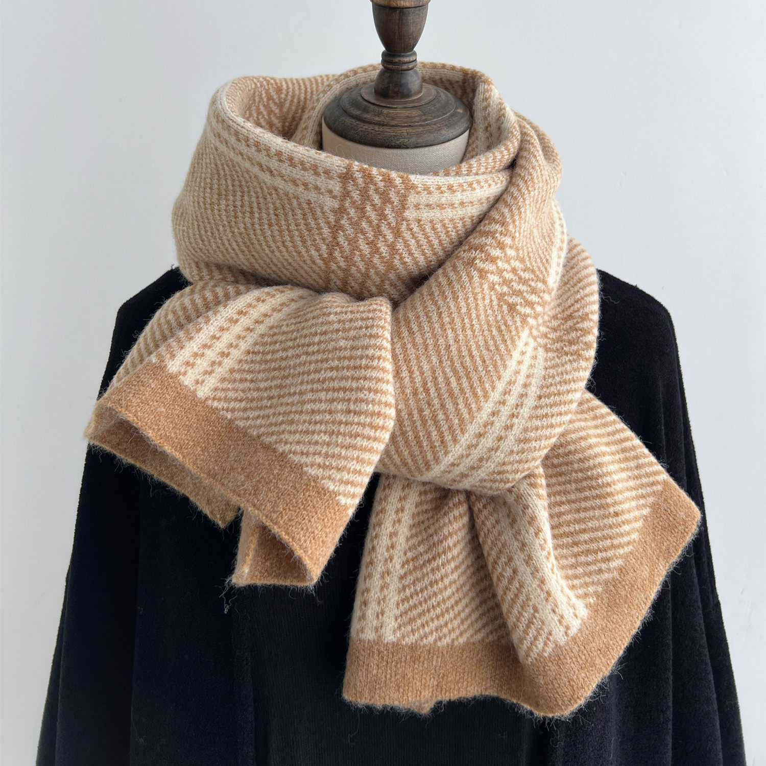 羊毛混纺针织保暖条纹拼色格子围巾女冬季氛围感韩系格纹高级感男