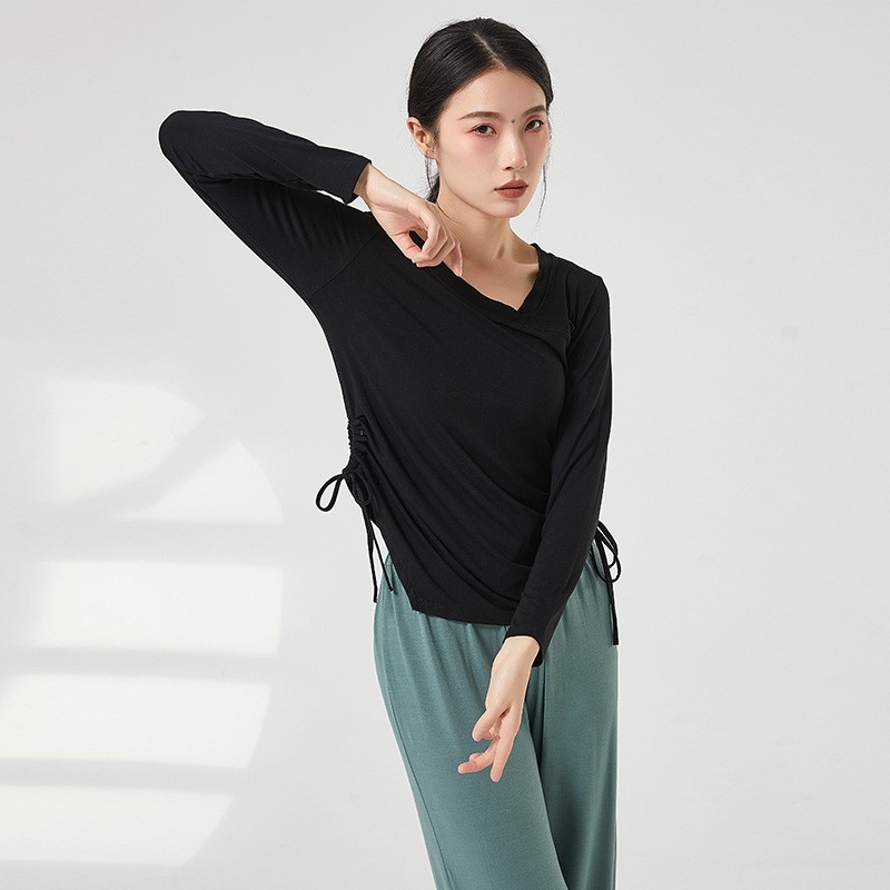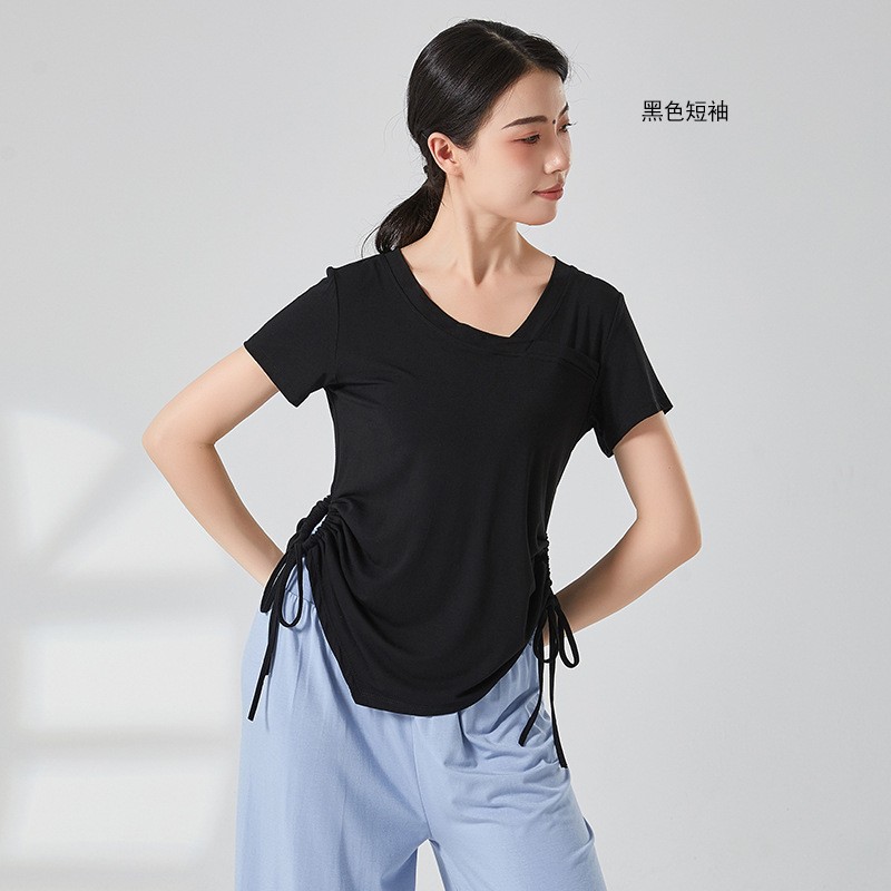 夏季现代舞短袖上衣古典练功服中国舞服装女生t恤v领时尚舞蹈衣服