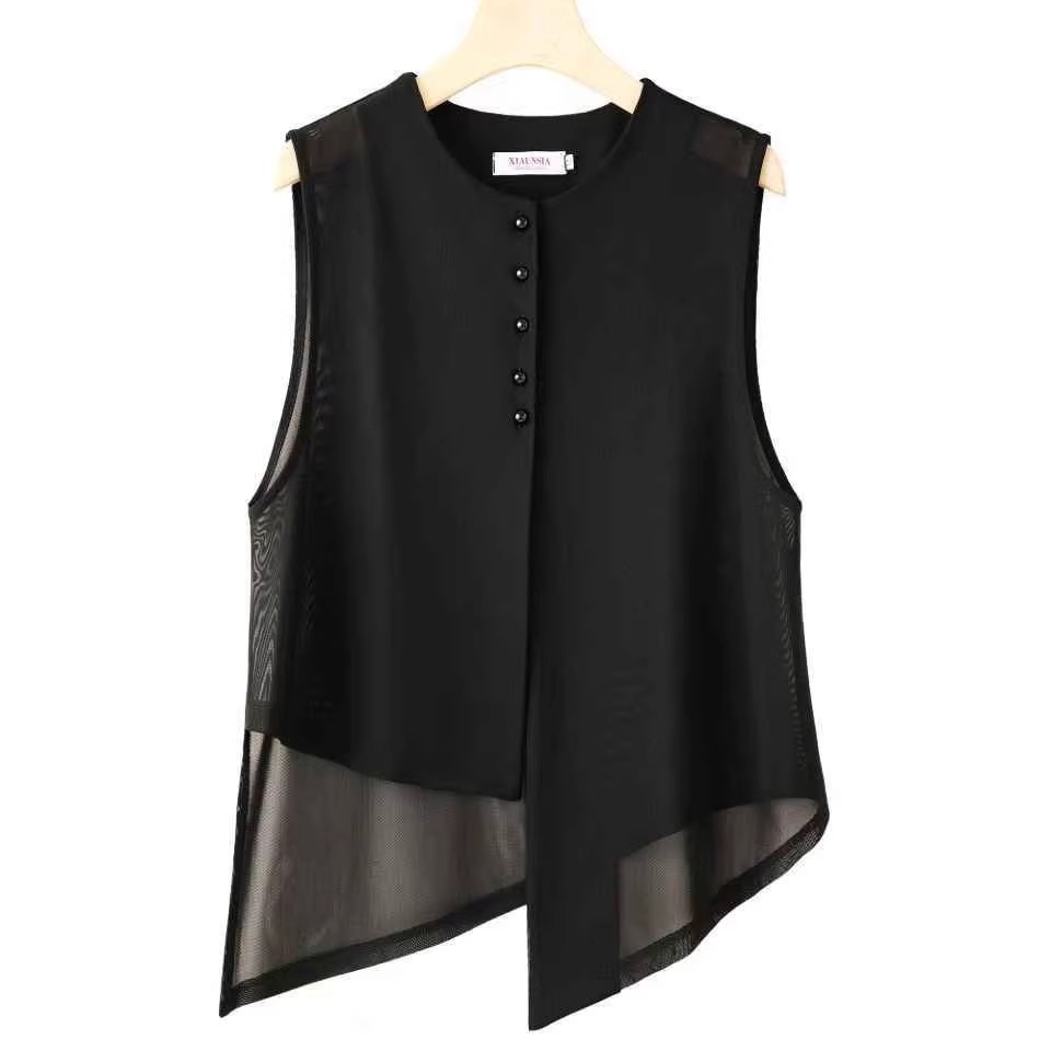 新中式国风马甲女不规则时尚网纱薄款外搭防晒无袖上衣夏季