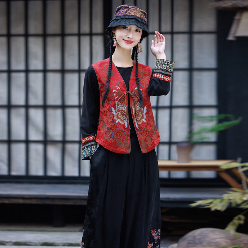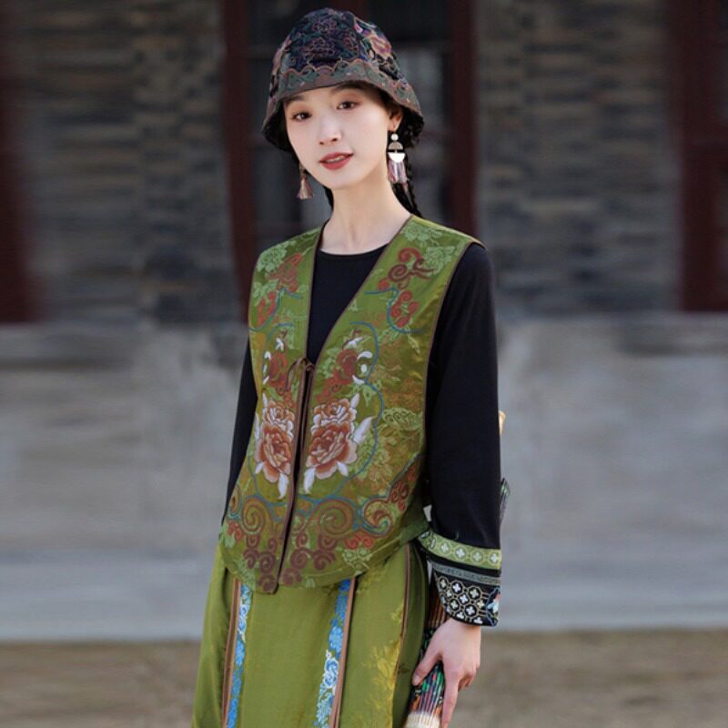 2025中国风重工刺绣系带无袖外搭 中式唐装 复古特色春秋女马甲