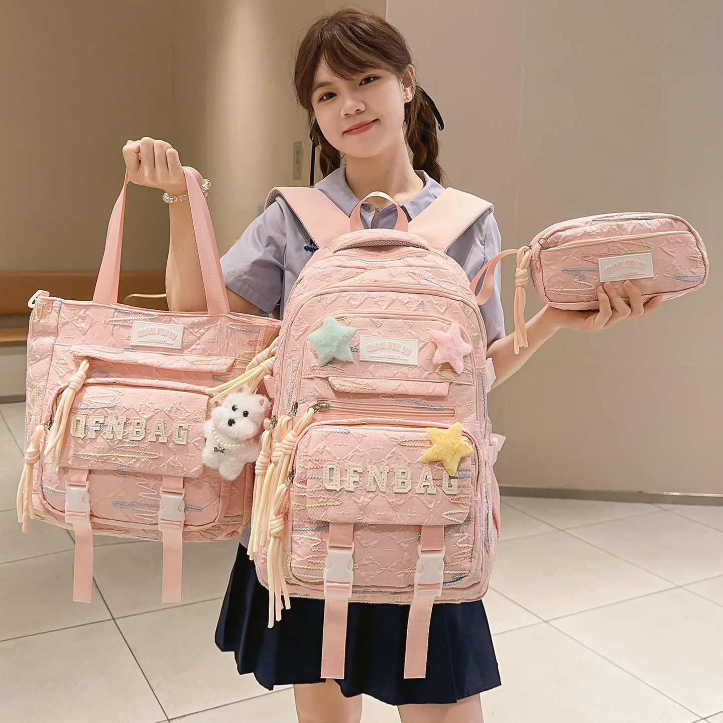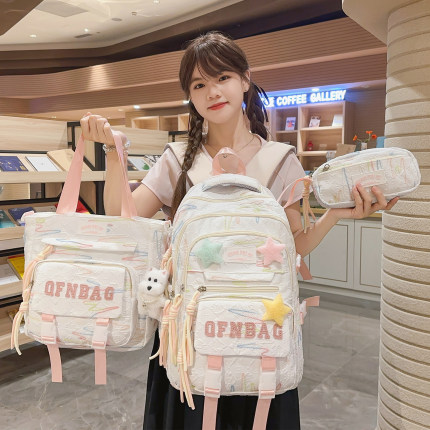 高颜值书包女生初中生小学生大容量背包高中多层大学生校园双肩包