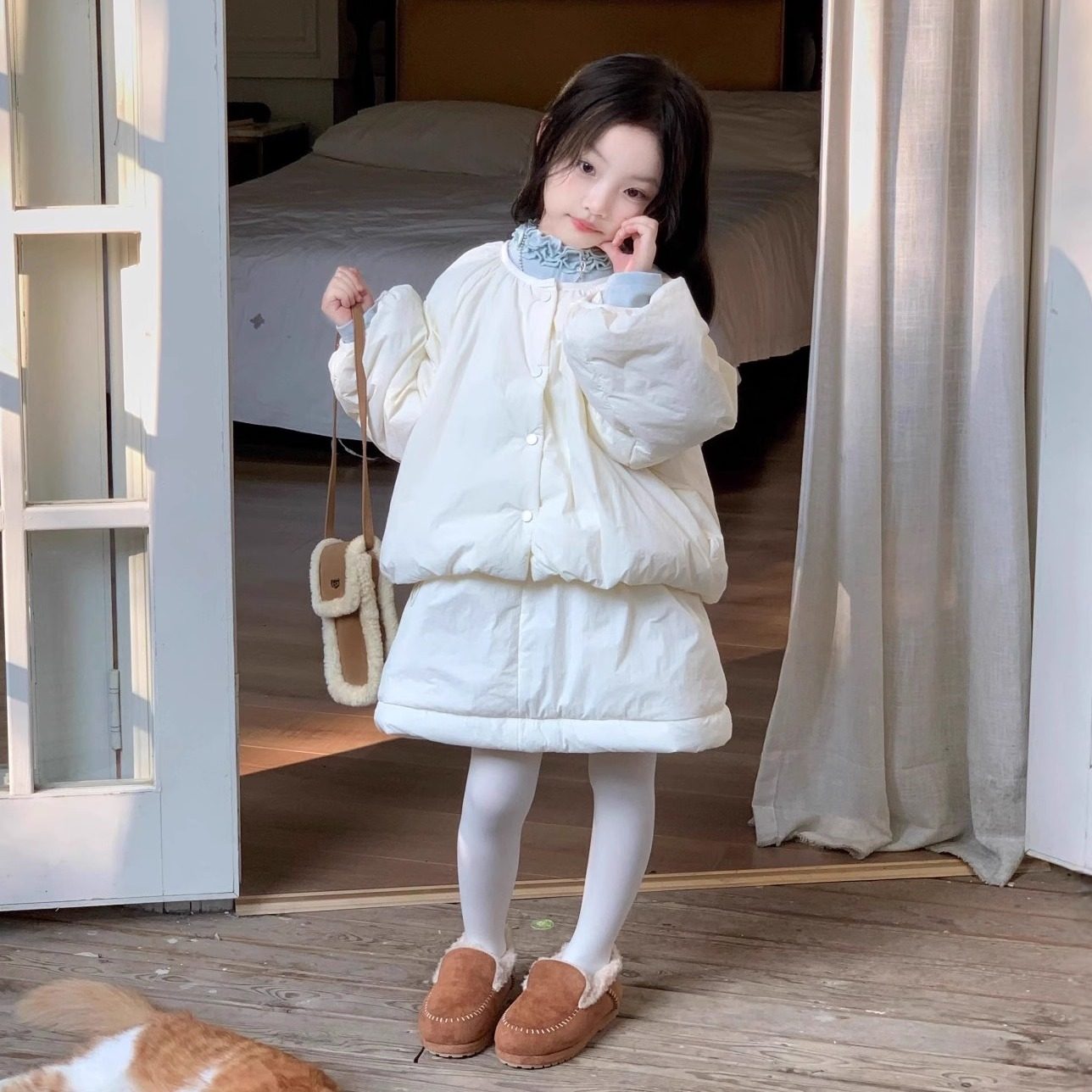 女童棉服外套短裙套装25冬洋气短款棉服儿童花苞外套短裙夹棉裙子