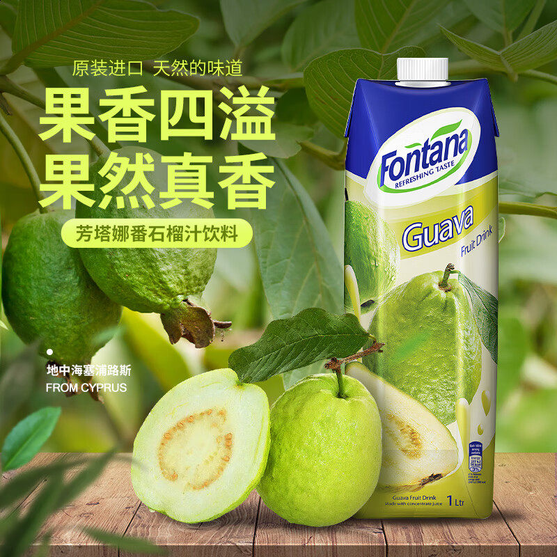 塞浦路斯进口fontana芳塔娜番石榴果汁饮料1L芭乐汁美式0脂饮品