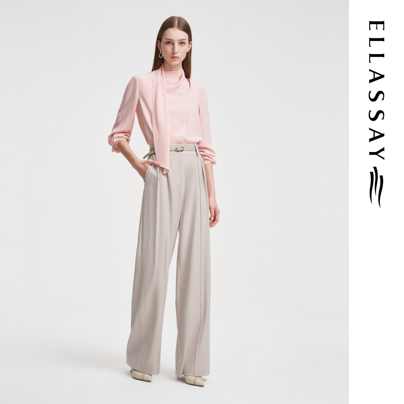歌力思奥莱春季新款真丝桑蚕丝法式柔美飘带衬衫女C030