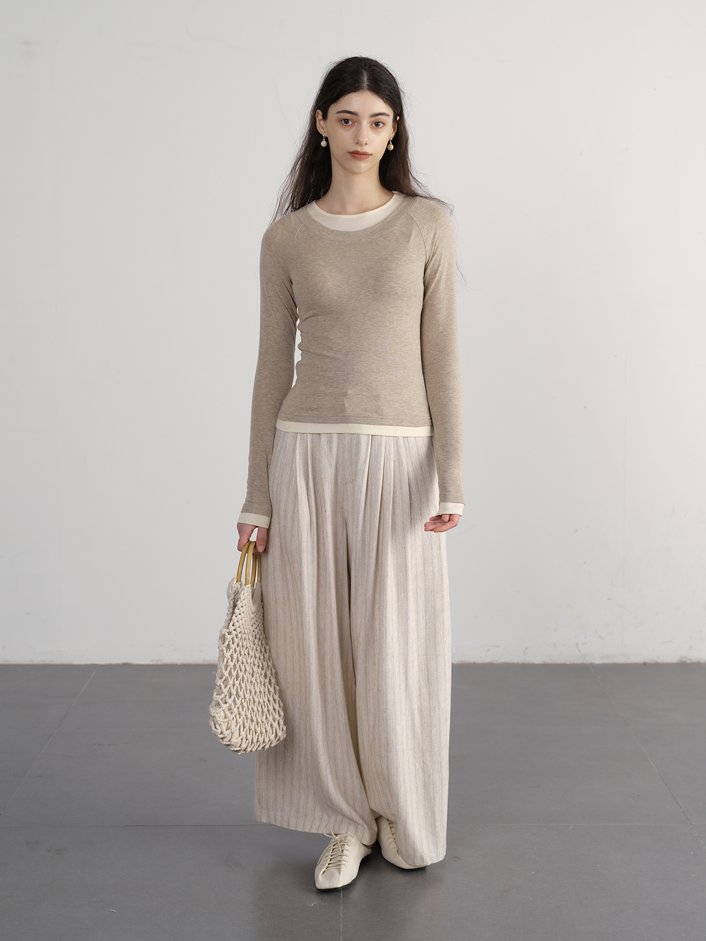 NOEND 24AW 云朵般舒适天丝羊毛假两件长袖打底衫圆领套头上衣