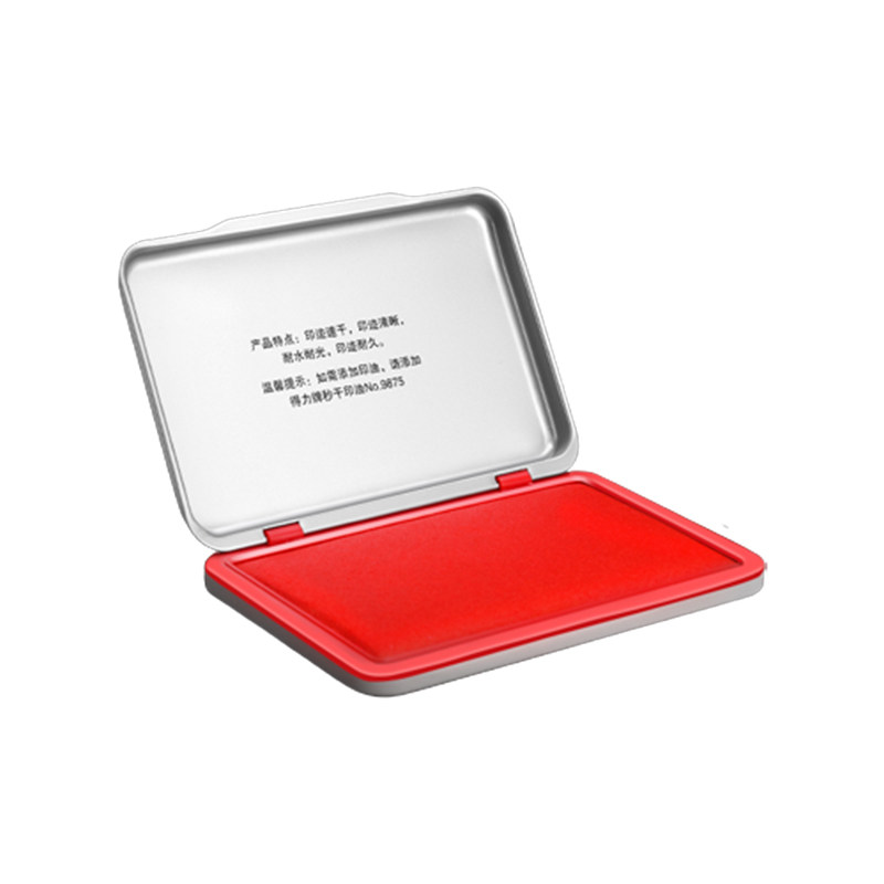 得力金属壳印泥印台红色印泥盒快干财务速干印章印尼大号按手印油指纹方形办公用品小号便携硬泥盖章秒干印油