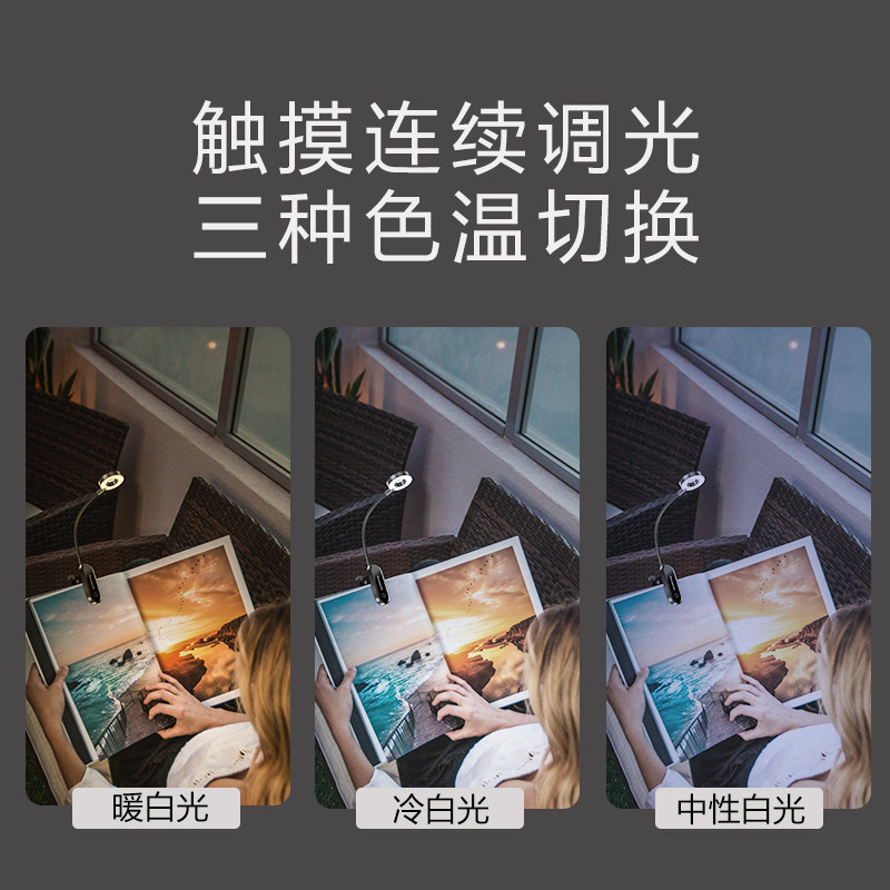 松下夹书灯护眼看书灯充电迷你学生卧室床上阅读床头台灯夜读神器